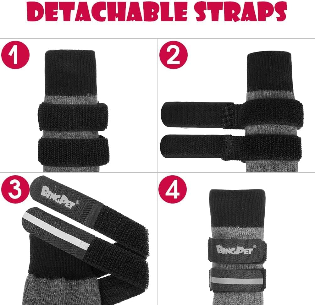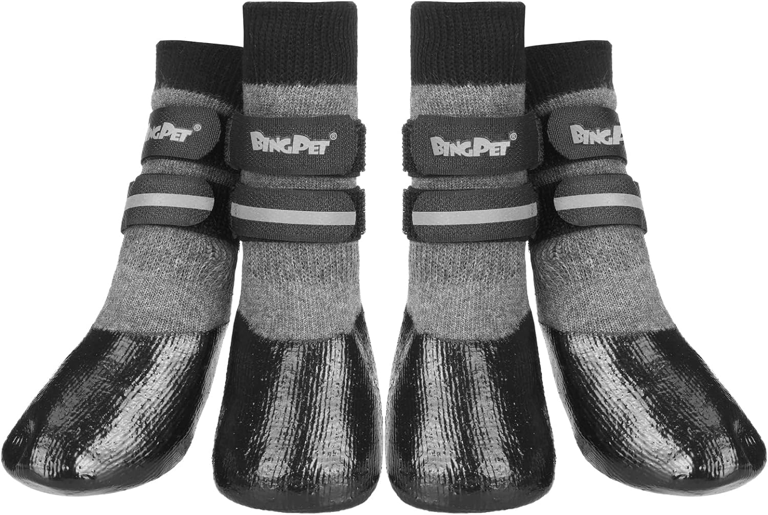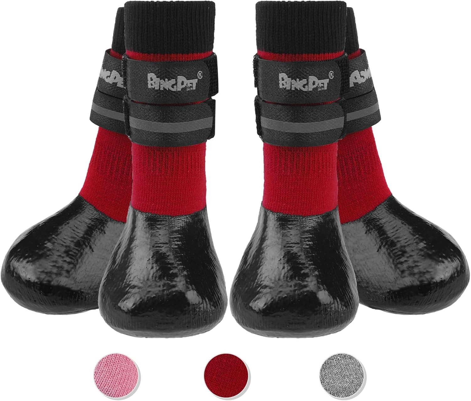 BINGPET Dog Socks for Hardwood Floors,Outdoor Anti Slip Waterproof Paw Protector,Dog Boots for Hot Pavement for All Season Grip Socks Prevent Licking for Small Medium Large Old Dogs