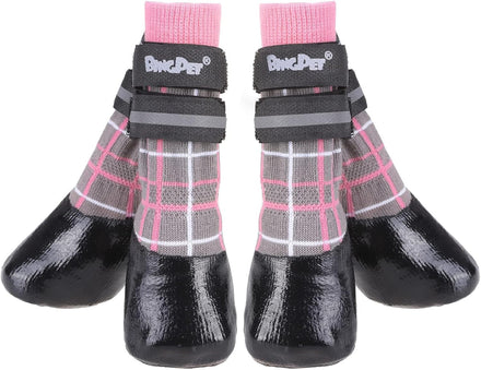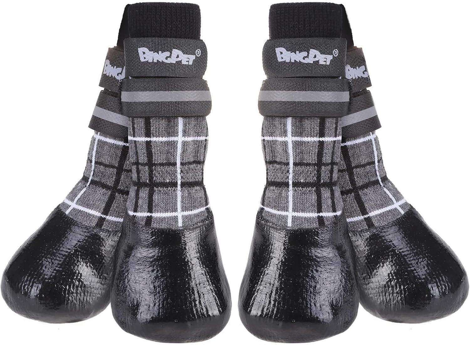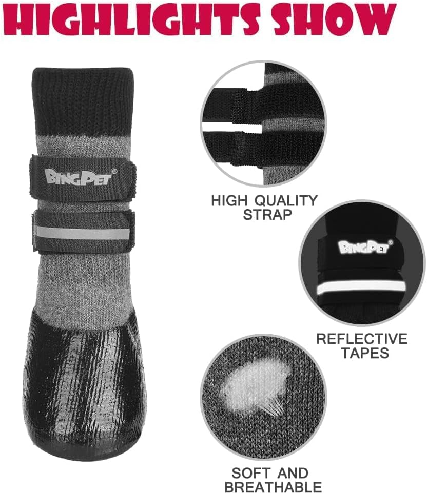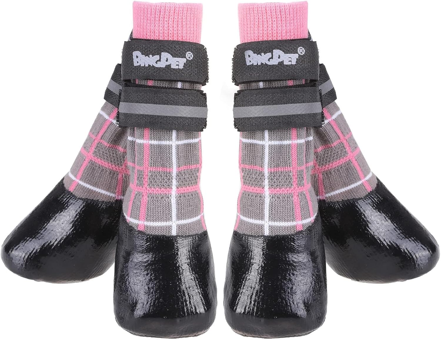 BINGPET Dog Socks for Hardwood Floors,Outdoor Anti Slip Waterproof Paw Protector,Dog Boots for Hot Pavement for All Season Grip Socks Prevent Licking for Small Medium Large Old Dogs