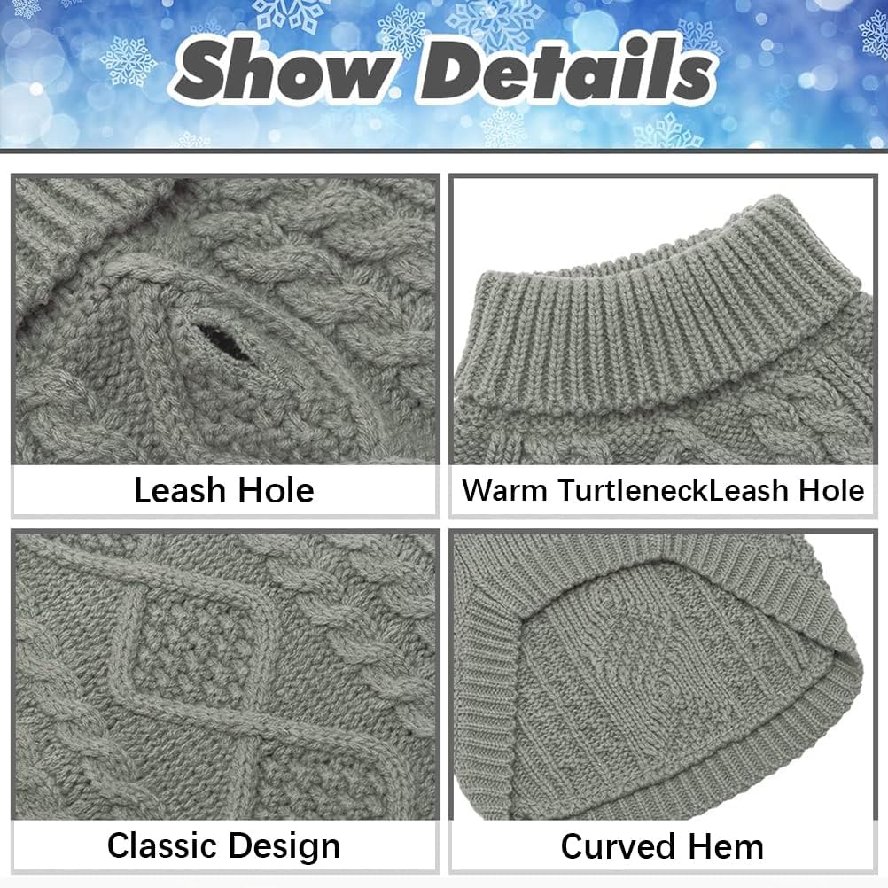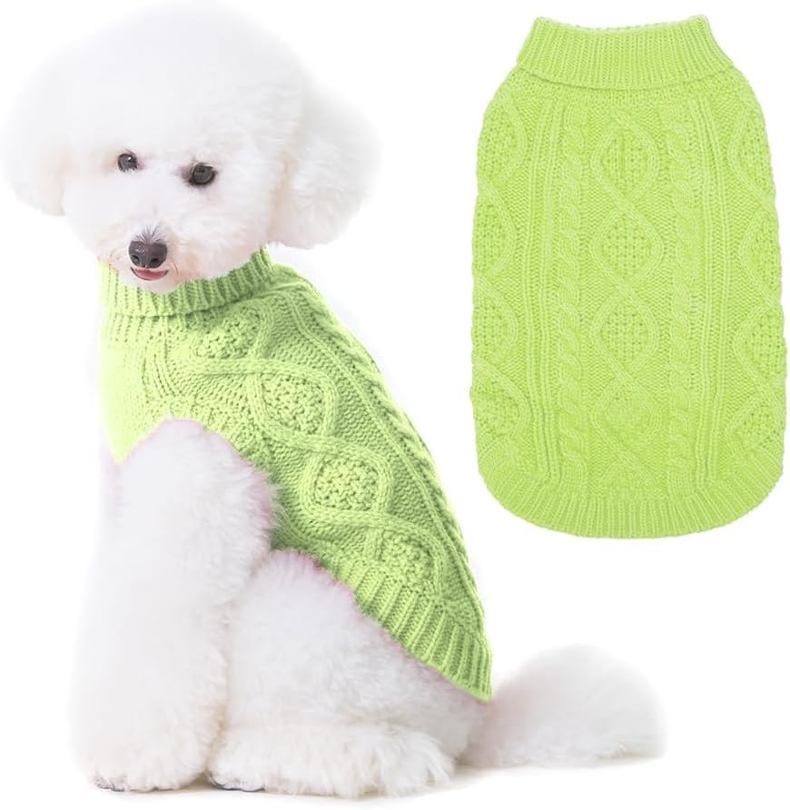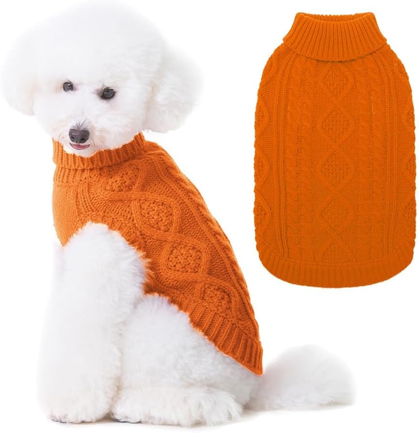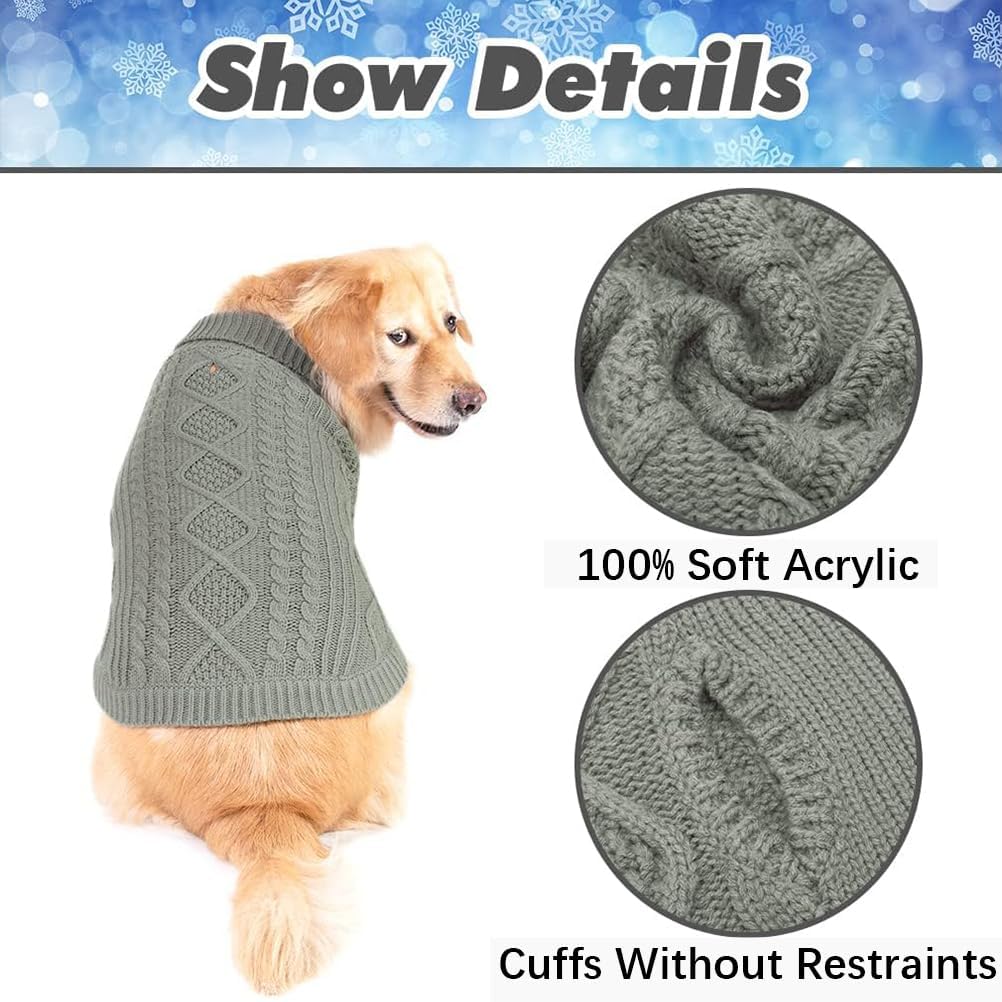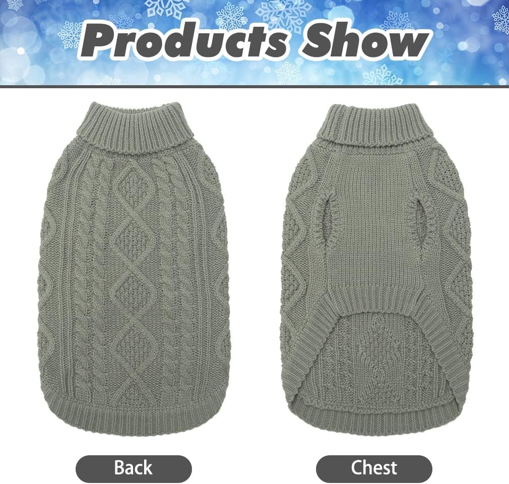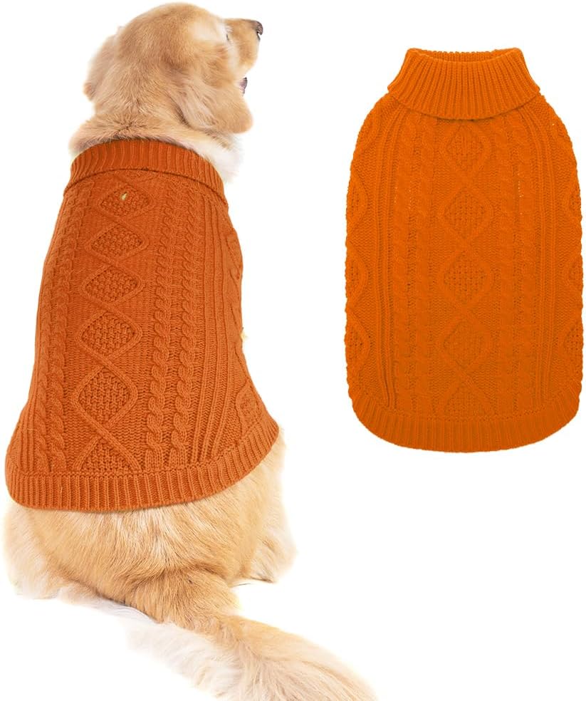 BINGPET Thermal Knitted Dog Sweater for Small Medium Large Dogs,Winter Dog Cat Coat Warm Sweartershirts Outfits,Classic Cable Knit Turtleneck Pullover Dog Jumper Coat Warm Sweartershirts