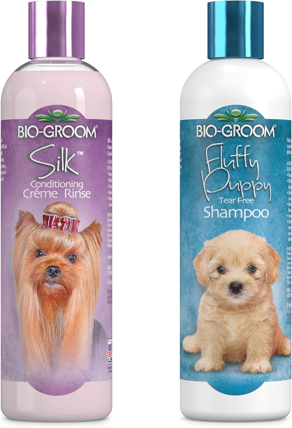 Bio-Groom Dog Shampoo and Conditioner Set - Tearless Shampoo for Dogs, Puppies & Cats, Moisturizing Conditioner for Dry Skin - Silk Conditioning Creme Rinse & Tear Free Shampoo, 12 Fl Oz Each (1 Set)