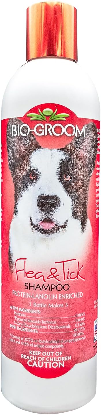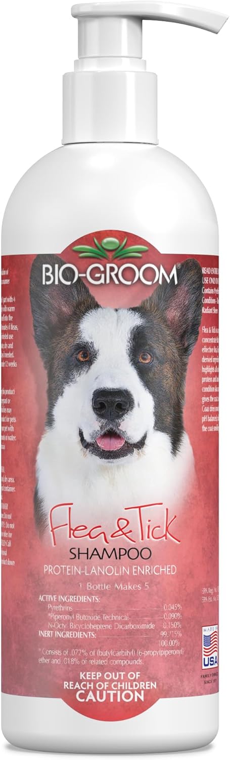 USE: Bio-Groom’s Flea and Tick Protein-Lanolin Enriched Pet Shampoo is a conditioning shampoo concentrate that contains Pyrethrins for effective flea, lice, and tick control.