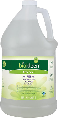 Our unique and synergistic blend of live enzyme-producing cultures, lavender and citrus extracts, and plant-based surfactants remove the toughest stains and odors and their return. For pets and everyday disasters, Bac-Out Pet to the rescue every time.