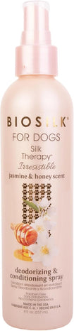 BioSilk® for Dogs features the same classic ingredients and innovative technology as the original and revolutionary BioSilk Silk Therapy line. Luxuriously formulated with silk and enriching vitamins that work together to restore the moisture balance to your dog's coat. This 2-in-1 Shampoo and Conditioner for Dogs cleanses and softens your dog, while leaving a jasmine and honey fragrance you’ll love. All formulas are pH balanced for dogs and safe to use with topical flea and tick treatments. Directions: Using warm water, wet coat thoroughly. Apply 2-in-1 Shampoo and Conditioner from back of ears to tail, carefully avoiding eyes. Lather and gently massage deep into coat and skin. Rinse well. Repeat as needed. For external use only. Safe for dogs 8 weeks of age or older. Keep out of reach of children and pets. Contains no parabens.