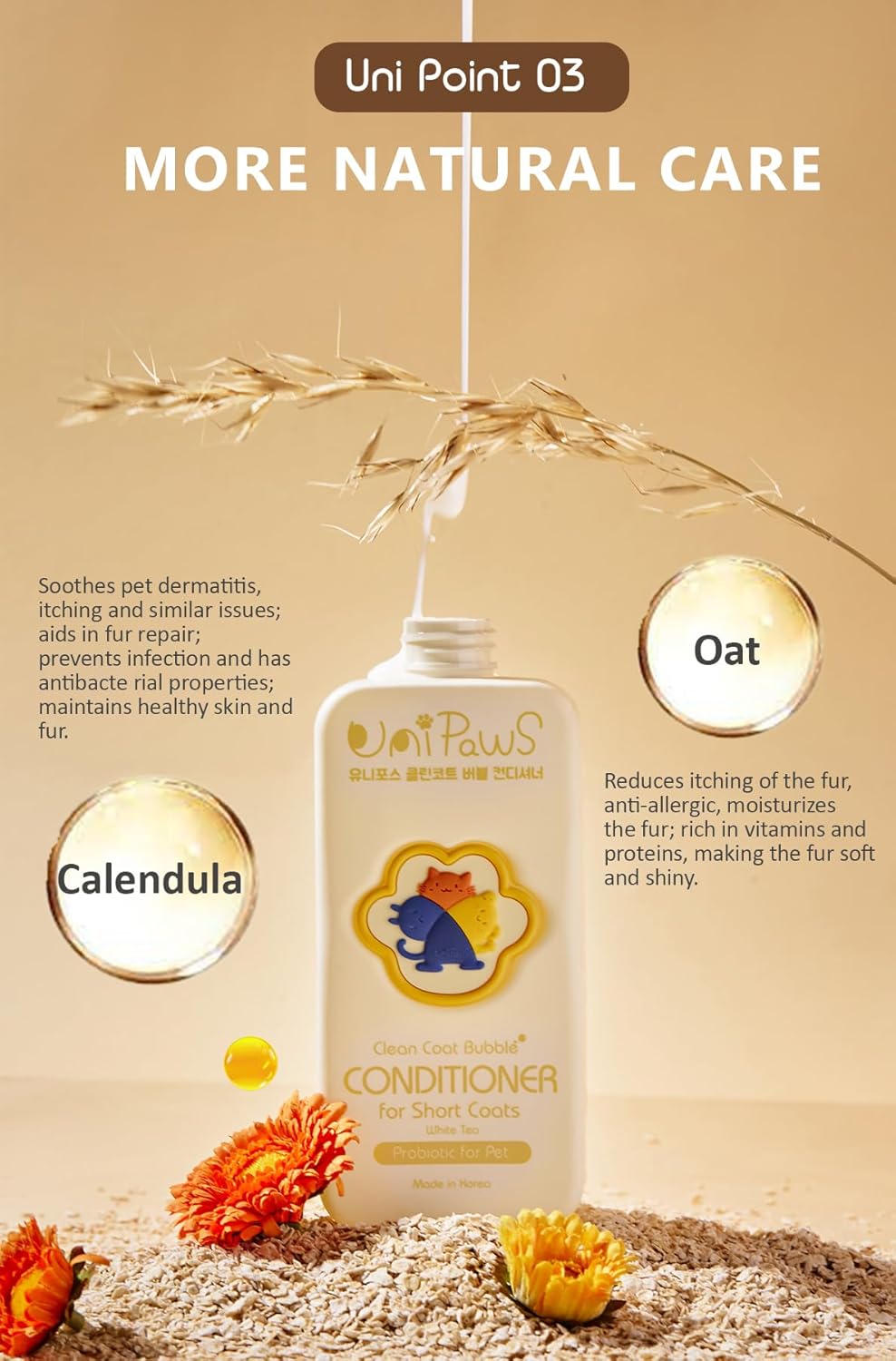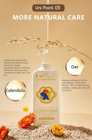 - Soothes Sensitive Skin with Plant-Based Relief: Calendula, oat protein, and hibiscus extracts deliver anti-itch, anti-inflammatory care to irritated skin—ideal for allergy-prone pups. The calming formula keeps short coats hydrated, shiny, and itch-free without harsh chemicals.
