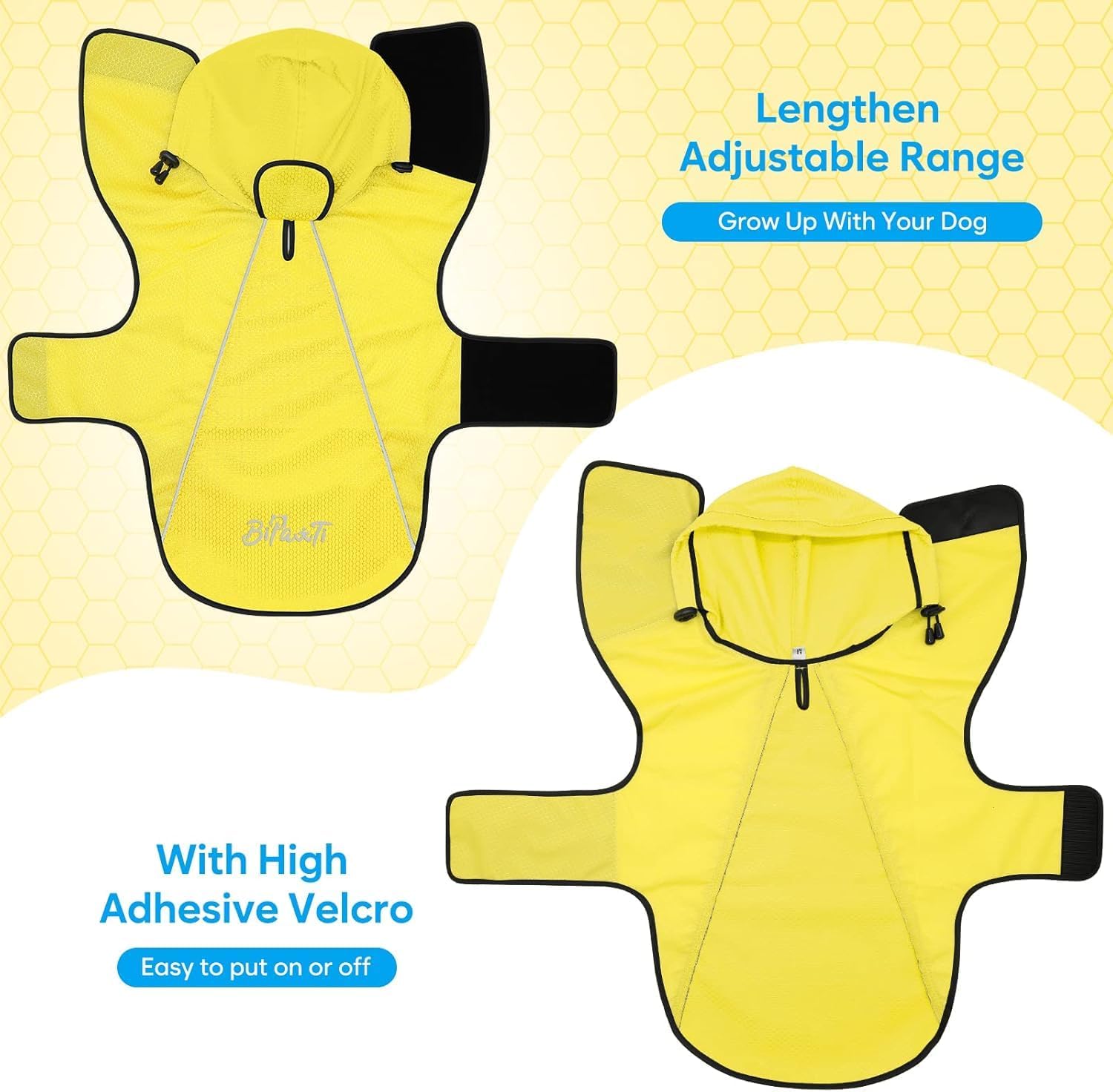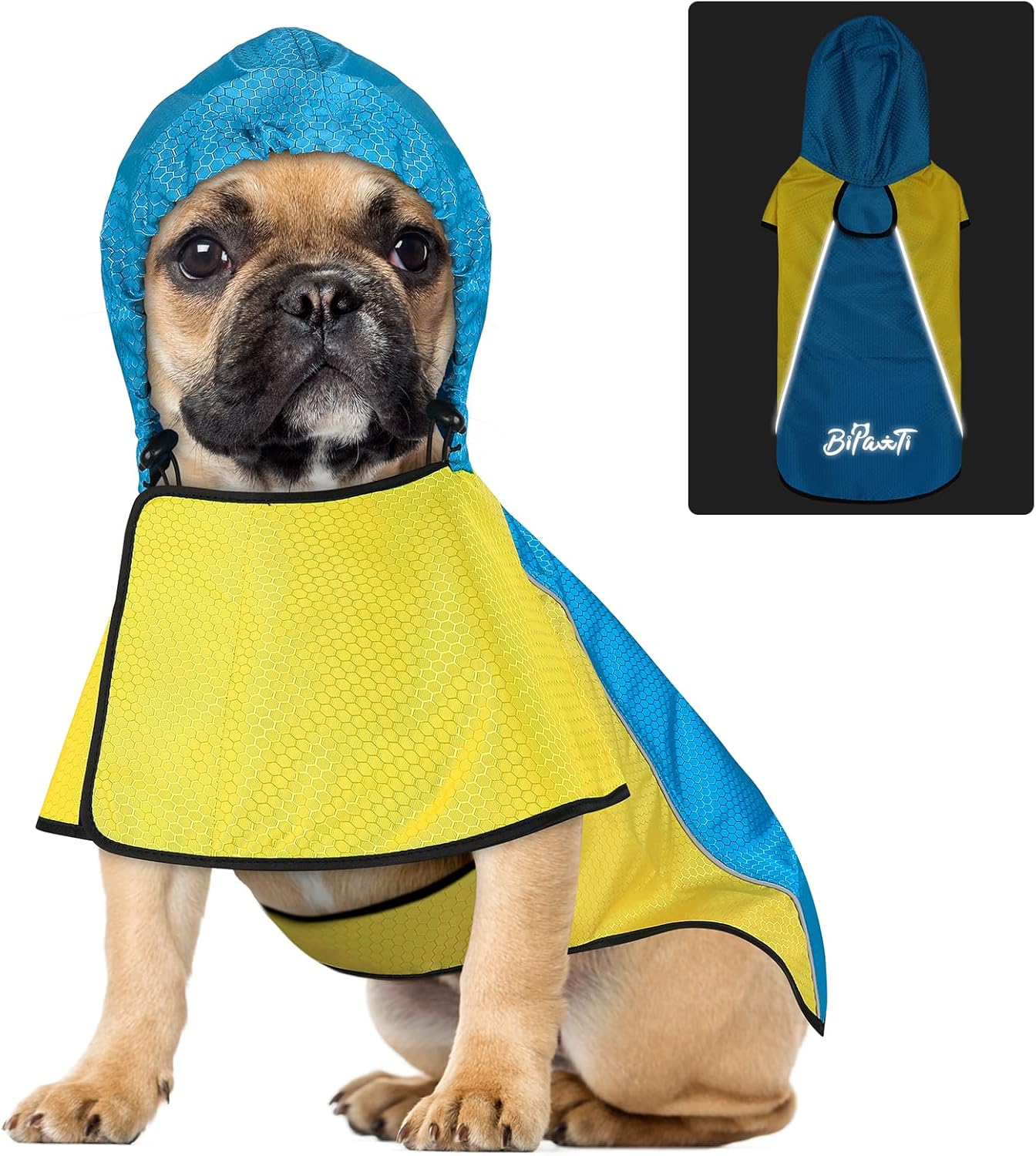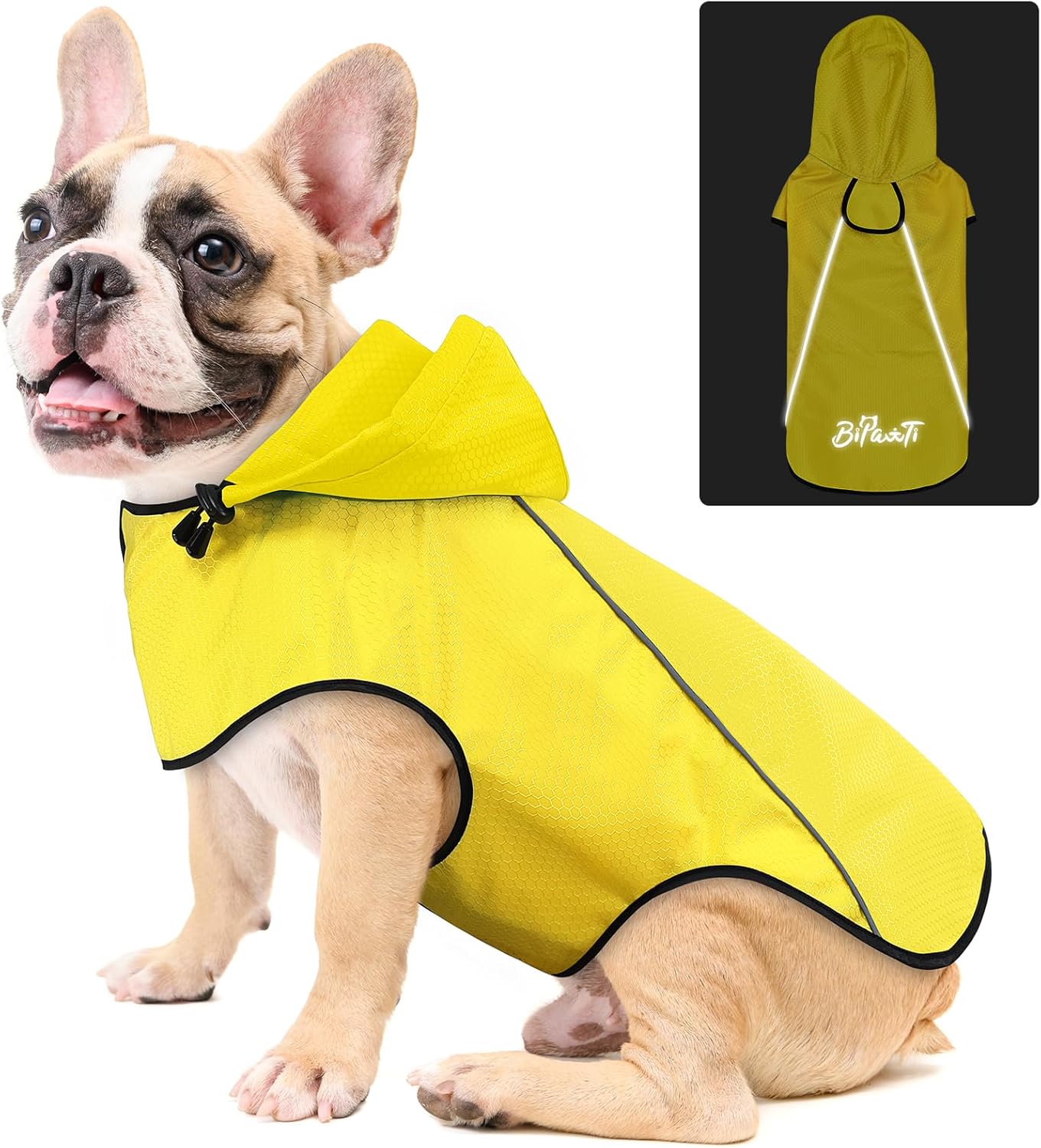 【Reflective Dog Raincoat with Leash Hole】BiPawTi dog rain coat is with reflective strips which can easily spot your dog in the dark environment (nights, early morning), adding more security and prevent accidents, while the leash hole allows you walk the dog easily.