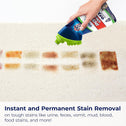 INSTANT AND PERMANENT STAIN REMOVAL. Instantly and permanently removes tough stains like tracked-in dirt, mud, blood, pet stains and more.