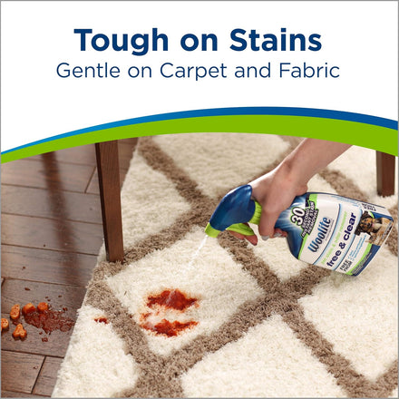 Clean up tough messes safely with this powerful formula that’s free of dyes, artificial fragrance, phosphates, and optical brighteners. Woo lite Free & Clear gives you instant stain removal in a free and clear formula. It’s perfect for tackling those tough stains while staying gentle on your senses. This stain remover safely and effectively goes to work right before your eyes. It instantly removes easy-to-see stains like red wine and pet urine. Plus, no need to worry when messes strike. With Woo lite Free and Clear on hand, you can clean with confidence knowing it’s safe to use around kids and pets, letting you live happily through life’s inevitable, messy moments.
