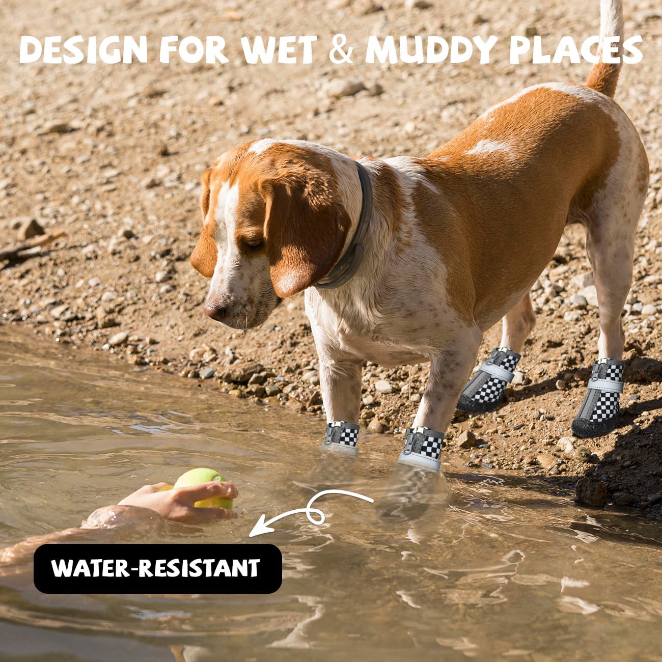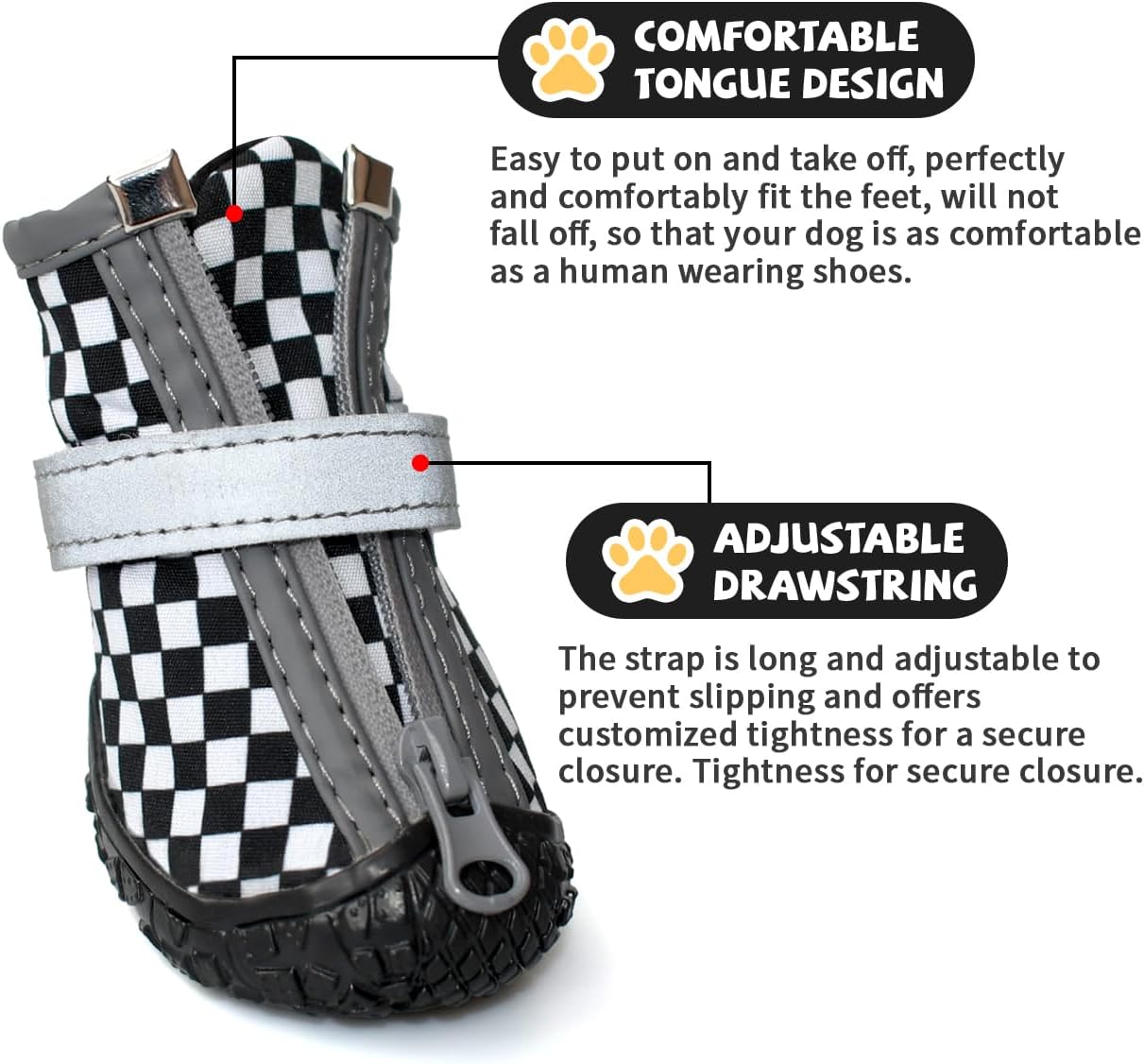 - Easy-to-Use and Secure: Featuring a zip and self-adhesive strap design, our dog boots offer hassle-free adjustment and a secure fit for any breed or size. Quick and easy to put on and take off, these boots keep your pup safe and visible, day or night.