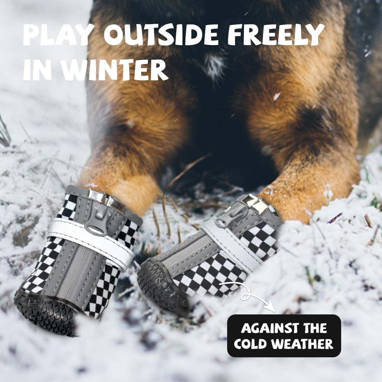 - Weather-Proof and Comfortable: Our high-quality water-repellent fabric protects against rain and snow, while the rubber soles provide a comfortable and non-slip experience for your dog's paws.