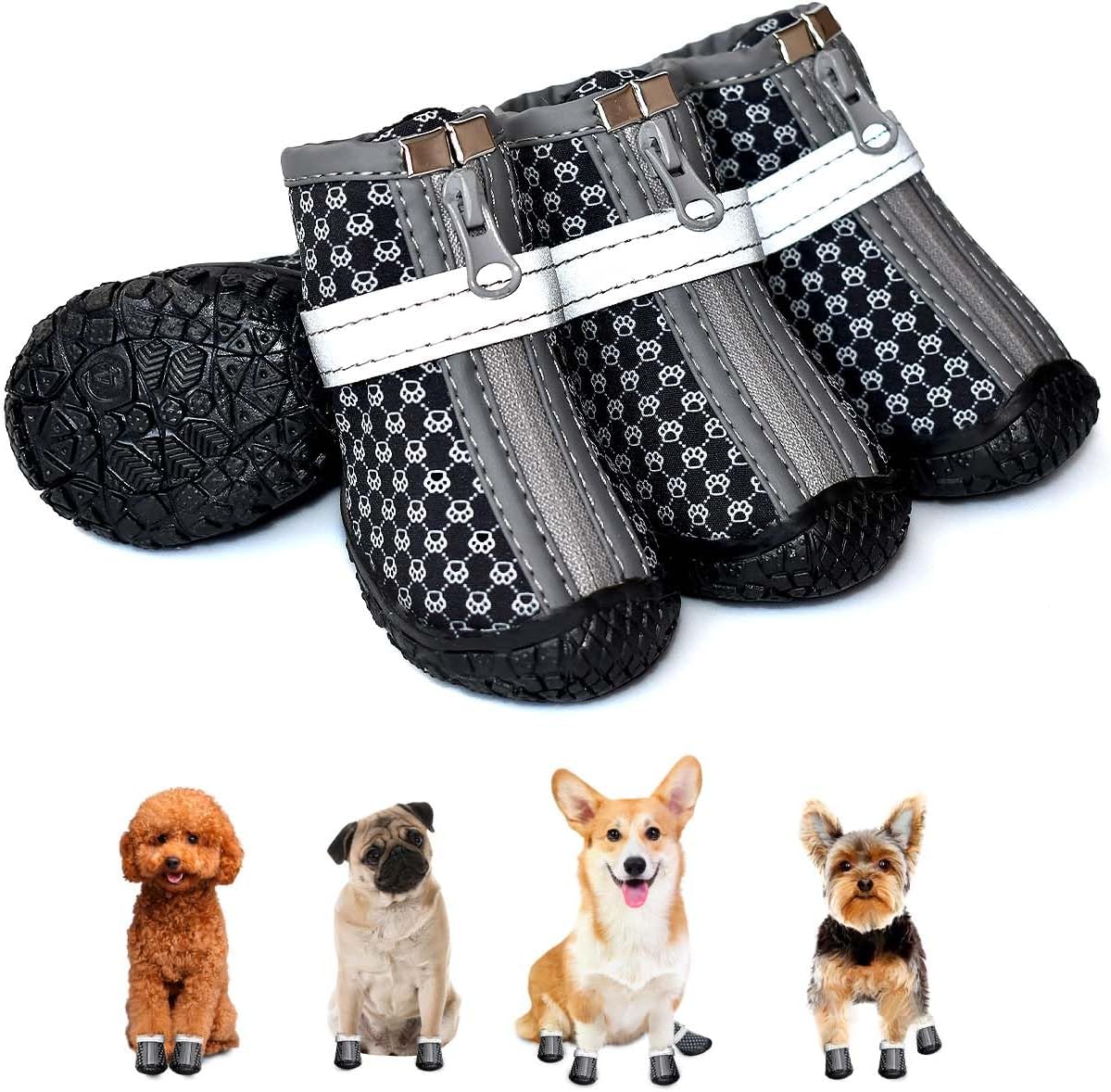 - Secure & Easy-to-Adjust Dog Shoes: Our dog boots feature wide slits and two adjustable reflective straps, ensuring a comfortable and snug fit that can easily be adjusted on the go. The shoes also come with a reflective strip design, providing enhanced visibility and protection for your furry friend during nighttime walks.