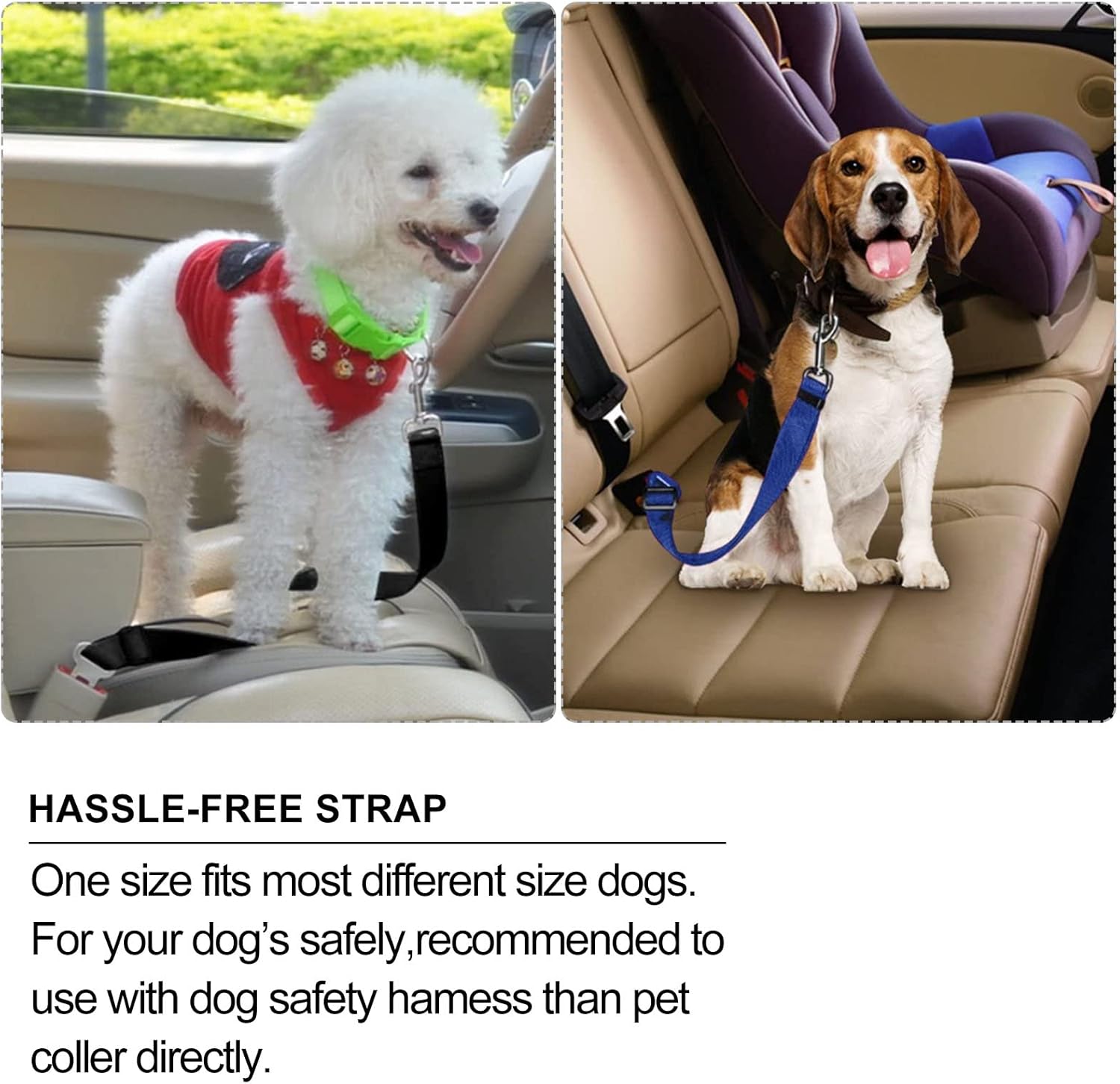 - 【Protecting pet】: Pets are a part of the family, so let's protecte them ! Dog seat belt for dogs has a 360 degree rotating clasp with adjustable straps, to ensure your pet can sit, lay, or stand comfortably.