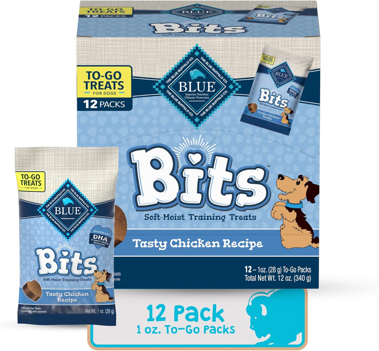 - Contains: One (1) 19-oz bag of BLUE Bits Natural Soft-Moist Training Dog Treats, Chicken Recipe