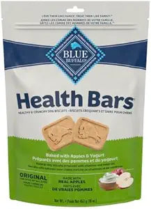 - MADE with APPLES: BLUE Health Bars dog treats prove that a healthy treat can be tasty, too; with ingredients like oatmeal, apples, and yogurt, these bars feature the ingredients you’ll be proud to feed your furry family members