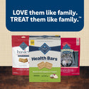 - Contains: One (1) 3-lb box of BLUE Health Bars Natural Crunchy Dog Treats Biscuits, Apples & Yogurt