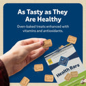 A favorite of health-conscious pet parents, Blue Buffalo Health Bars deliver the great taste and satisfying crunch our furry friends love, but without any corn, wheat, or soy. Made with the finest natural ingredients, fortified with Omega 3 and antioxidants, and oven-baked for a big crunch, these treats are as healthy as they are tasty!