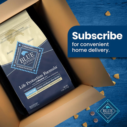 Because the nutritional requirements for senior dogs are different from other life stages, BLUE Life Protection Formula Chicken and Brown Rice Senior dry dog food is made with the ingredients to support your dog’s overall health and well-being. It’s a high-quality, balanced recipe you can both feel great about. With real chicken first and ingredients enhanced with vitamins, minerals, and other nutrients, BLUE Life Protection formula is designed to help your dog thrive. Formulated specifically for senior dogs, this diet contains Glucosamine and Chondroitin to support joint and hip health for overall mobility. Like all BLUE dry foods, BLUE Life Protection Formula includes exclusive antioxidant-rich LifeSource Bits, which are “cold-formed” to retain their potency. Give your dog the balanced nutrition of BLUE Life Protection Formula today. BLUE Life Protection Formula is brought to you by Blue Buffalo, the leader in natural pet food. Blue Buffalo makes premium-quality pet foods featuring real meat, fruit, and vegetables. Love them like family. Feed them like family.