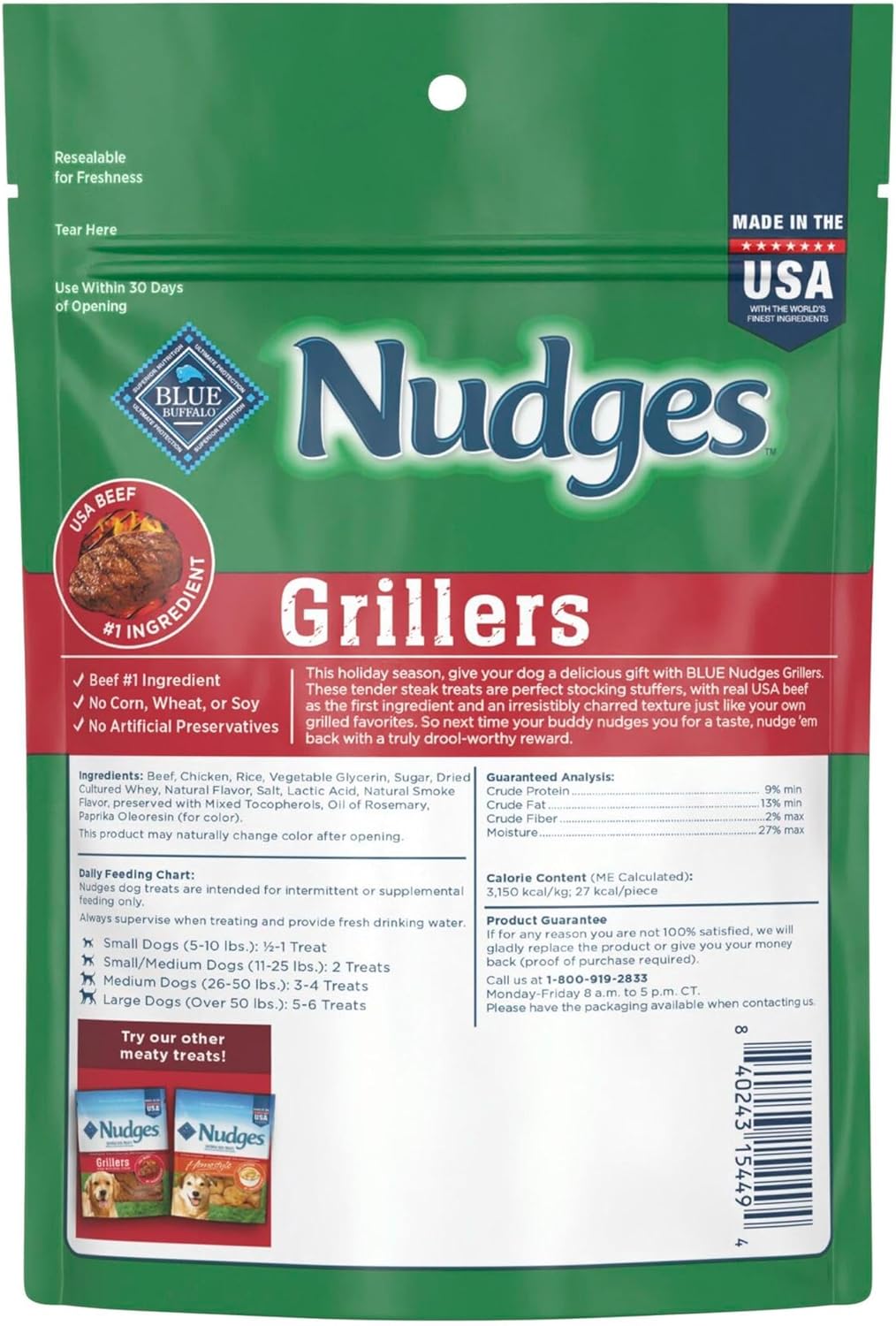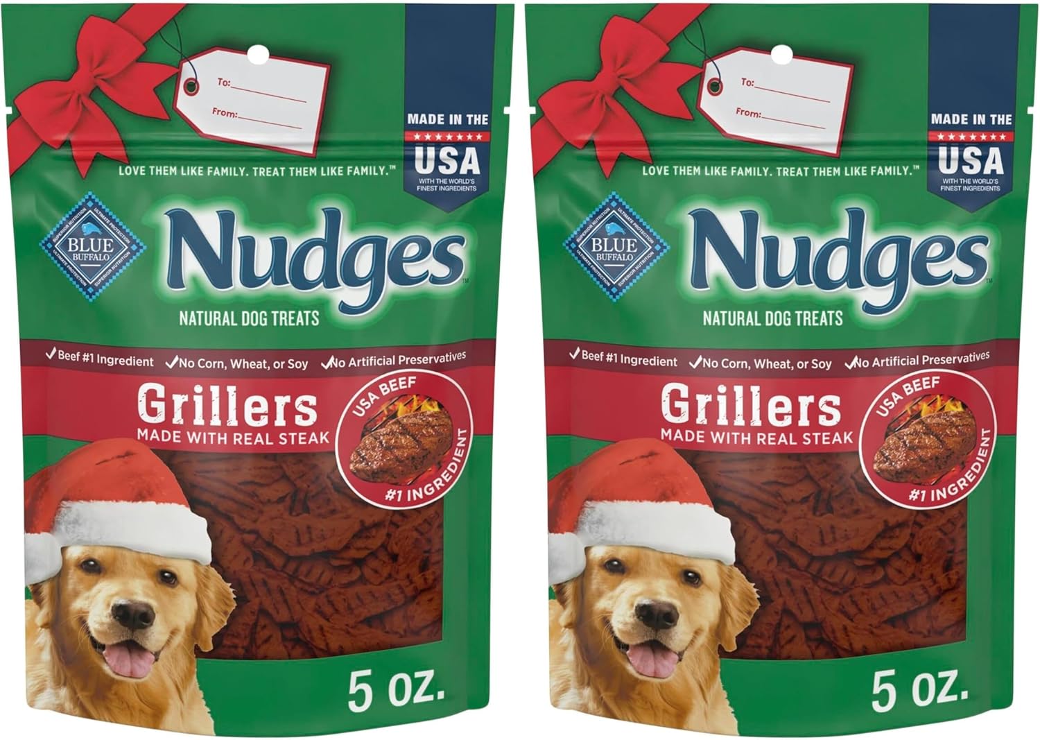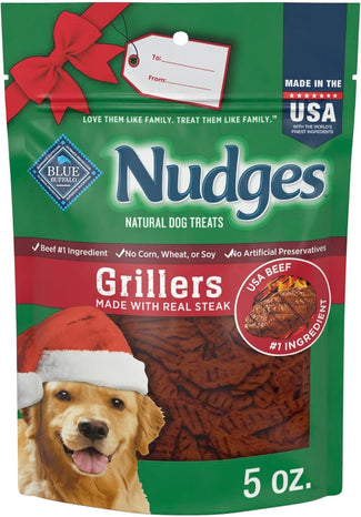 - TIS THE SEASON FOR TASTY DOG TREATS: Spread holiday cheer with BLUE Nudges Steak Grillers - delicious dog treats made with high-quality, real ingredients, like tasty beef