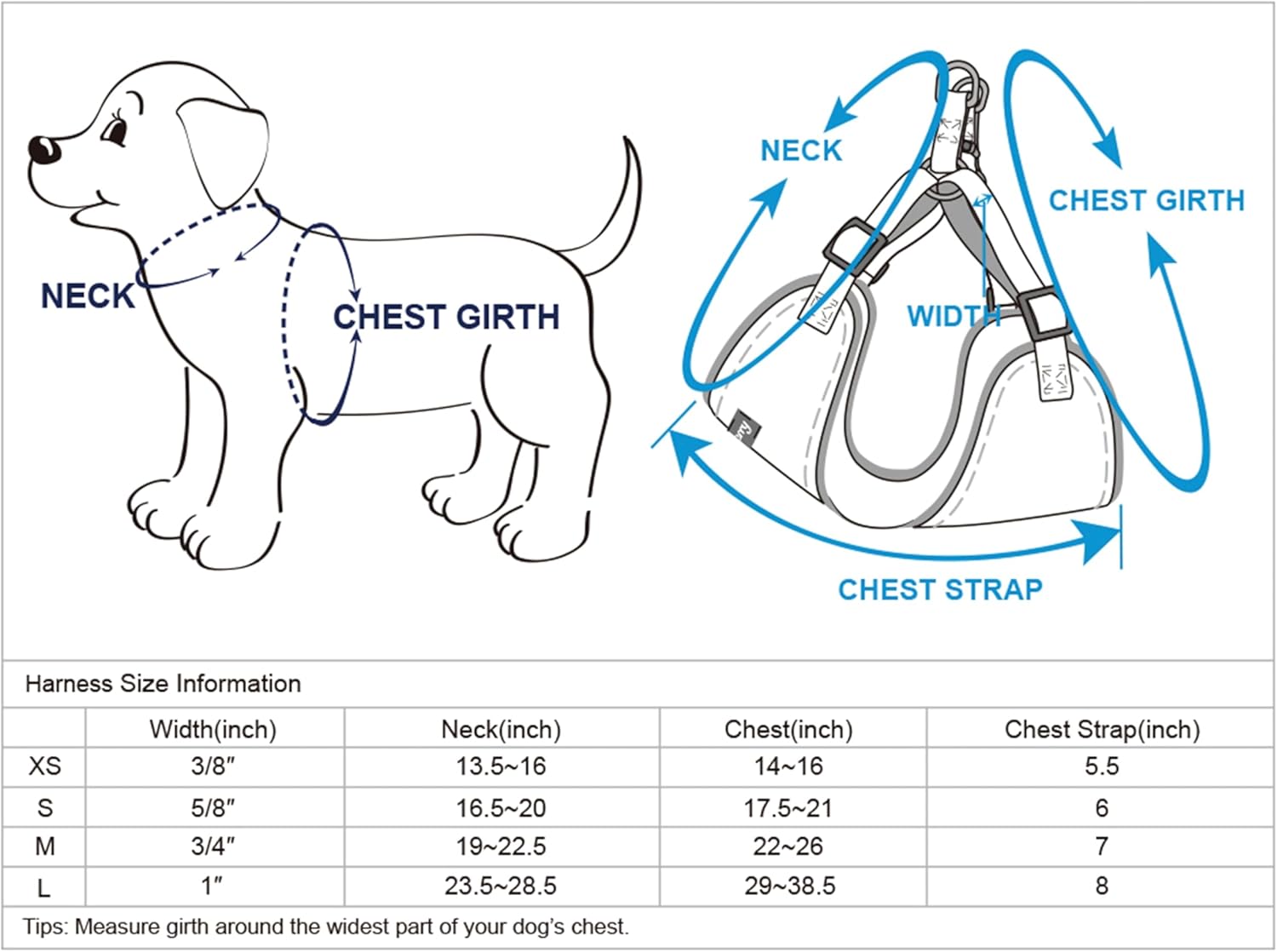 - Adjustable & Durable Design: This dog harness for large dogs and small dog harness features adjustable chest girth 22-26" and neck 19-22.5", ensuring a perfect fit for all. Made with durable polyester webbing, it promises long-lasting use.