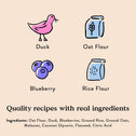 Treat your dog with Bocce’s Bakery Bac N' Nutty Training Treats. Our bite-sized tasty duck and blueberry snacks are sure to be a hit with your dog! These chewy treats are made with all-natural ingredients and a wheat-free recipe. Ingredients: Oat Flour, Duck, Blueberries, Ground Rice, Ground Oats, Molasses, Coconut Glycerin, Flaxseed, Citric Acid Bocce’s Bakery started in a tiny West Village kitchen with a mixer, an oven, and a scruffy mutt named Bocce with the belief that dogs deserve better. Better treats with fresher, simpler, all-natural ingredients.