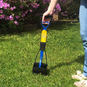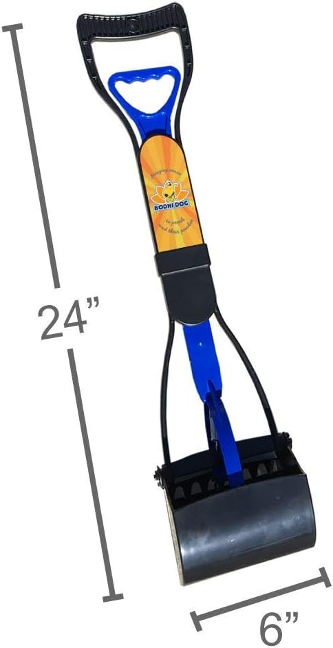 - STRATEGIC DESIGN: The handle offers ergonomic finger slots and an easy hang hole. Whether in the back yard or on a walk, at 24" inches tall, we are longer than many inferior competitive offerings. Our uniquely designed, alternating bucket-teeth pattern, leaves space for grass to escape without the waste. Our large bucket scoop is perfect for large dogs or small dogs and you can clean on grass, gravel, concrete, dirt and other surfaces.