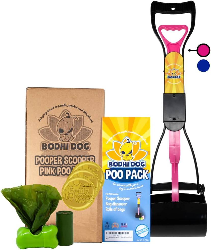 Bodhi Dog's Pooper Scooper Poo Pack is the complete sanitary waste removal package made for pets of all sizes. Made of premium plastic, our poop pickup tool is designed to provide you years of waste management in the grass, gravel, dirt, and more. Perfect for cleaning up your backyard before spring and summer fun with the family! Our Poo Pack comes with one roll of poo bags and a bone bag holder. Just cover the scoop head with a bag for an easy, mess-free cleanup. Invert the bag to dispose of it