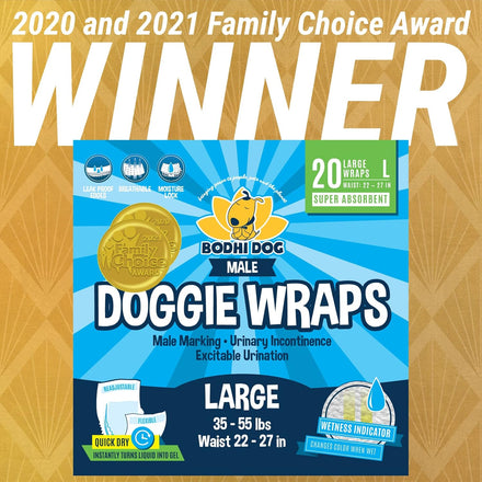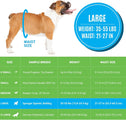 - ULTRA ABSORBENT PROTECTION FOR LARGE SIZED DOGS: Our disposable male doggie wraps are the easiest way to manage messes from male marking, urinary incontinence, excitable urination, potty training and housebreaking. Our Large size fits breeds such as Australian Shepherds, Basset Hounds, Boxers, Springer Spaniels, Bull Terriers, Bulldogs, Retrievers, Chow Chows, English Setters, Poodles and more. These wraps fit male dogs that weigh 35-55 lbs with a waist size of 22-27 inches.