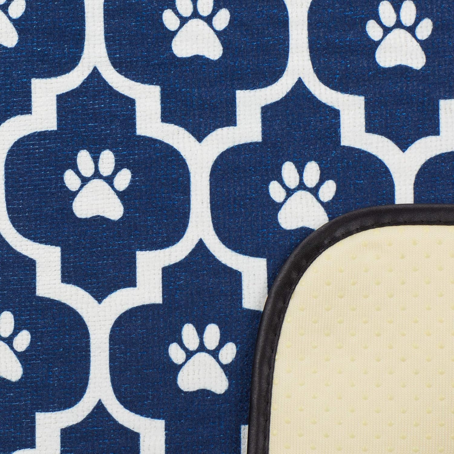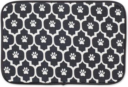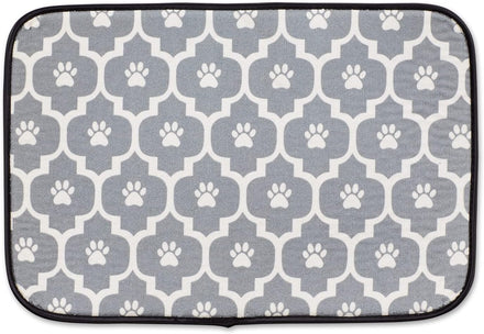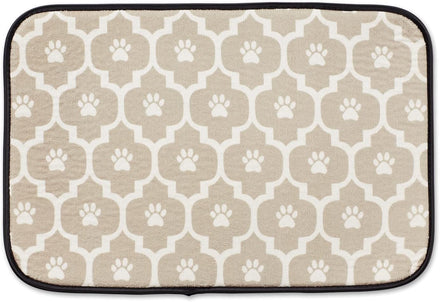 Bone Dry Microfiber Pet Mat for Food and Crate Provide your pet with their own dining area to minimize mess, absorbs spills, and keep their eating area nice and dry. This pet placemat is made of superabsorbent microfiber and immediately soaks up any slop, splash, or spill. Use it in your pet’s crate or kennel—maximum absorbency ensures that your pet doesn’t slosh around in spilled water—and it helps protect your carpets and hardwoods from water and food stains near the kitchen, laundry room, dining room, or wherever they eat. Make Life Easy If your kitten just had to play in the water bowl or your puppy had to turn his dish upside down, don’t worry, these mats are machine washable. Wash in cold water, and lay flat to dry; do not use bleach or fabric softener. Available in an assortment of colors to match your home. Pets Are Family! We believe pets are part of the family. We have developed products that both you and them will enjoy. Bone Dry offers ceramic pet bowls, mats, beds, cage liners, toy baskets, toys, bath towels, blankets, treat containers, and more. To view our entire pet collection, click on the Bone Dry link at the top of the page.