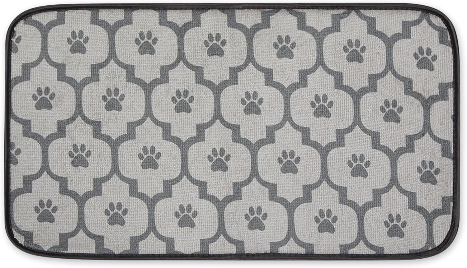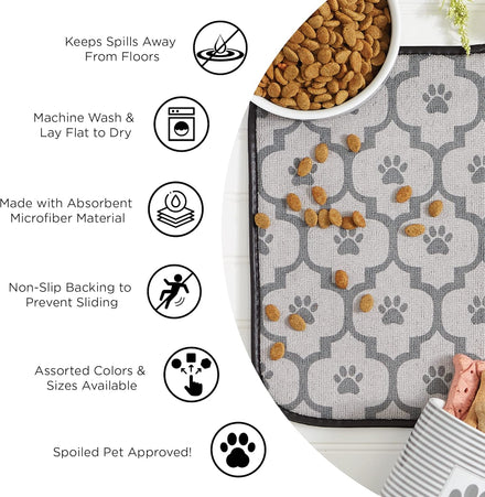 - ULTRA-ABSORBENT AND DURABLE: This food mat absorbs any water splash, food stains or spills, protecting your carpets and hardwoods; The non-slip back surface prevents it from sliding across smooth surfaces
