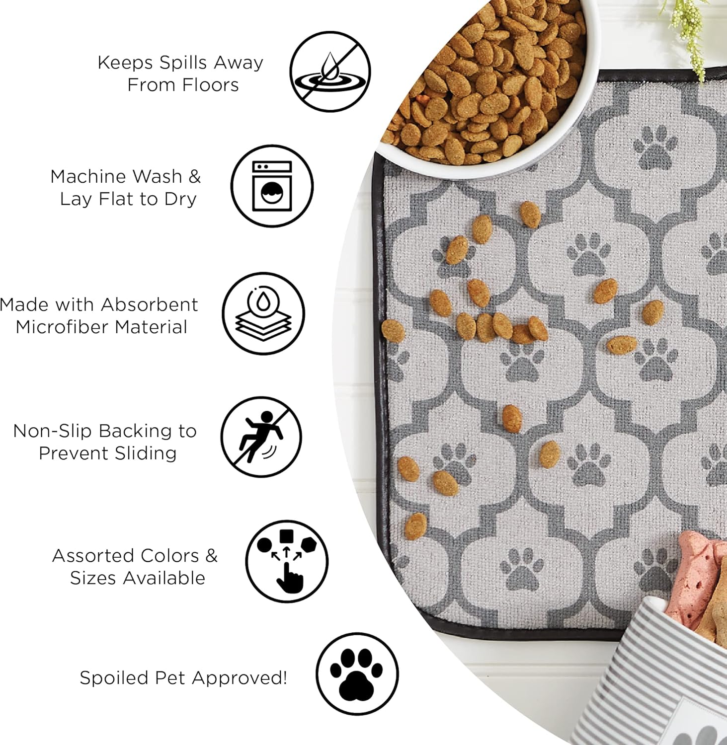 - PET MAT FOR SPILLS: Lightweight food mat measures 12x18"; maximum absorbency ensures that your pet doesn’t slosh around in spilled water