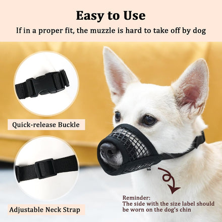 - Fácil de usar y transportar: nuestro bozal suave para perros también cuenta con una correa ajustable para el cuello que lo asegura en su lugar. La hebilla fácil de poner hace que los mejillones para perros sean más fáciles de poner y quitar. Si se ajusta adecuadamente, este bozal para perros de tamaño mediano es difícil de quitar por los perros. Además, el bozal de malla es muy ligero y altamente empacable: se puede plegar y almacenar en un bolsillo fácilmente.