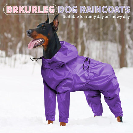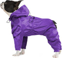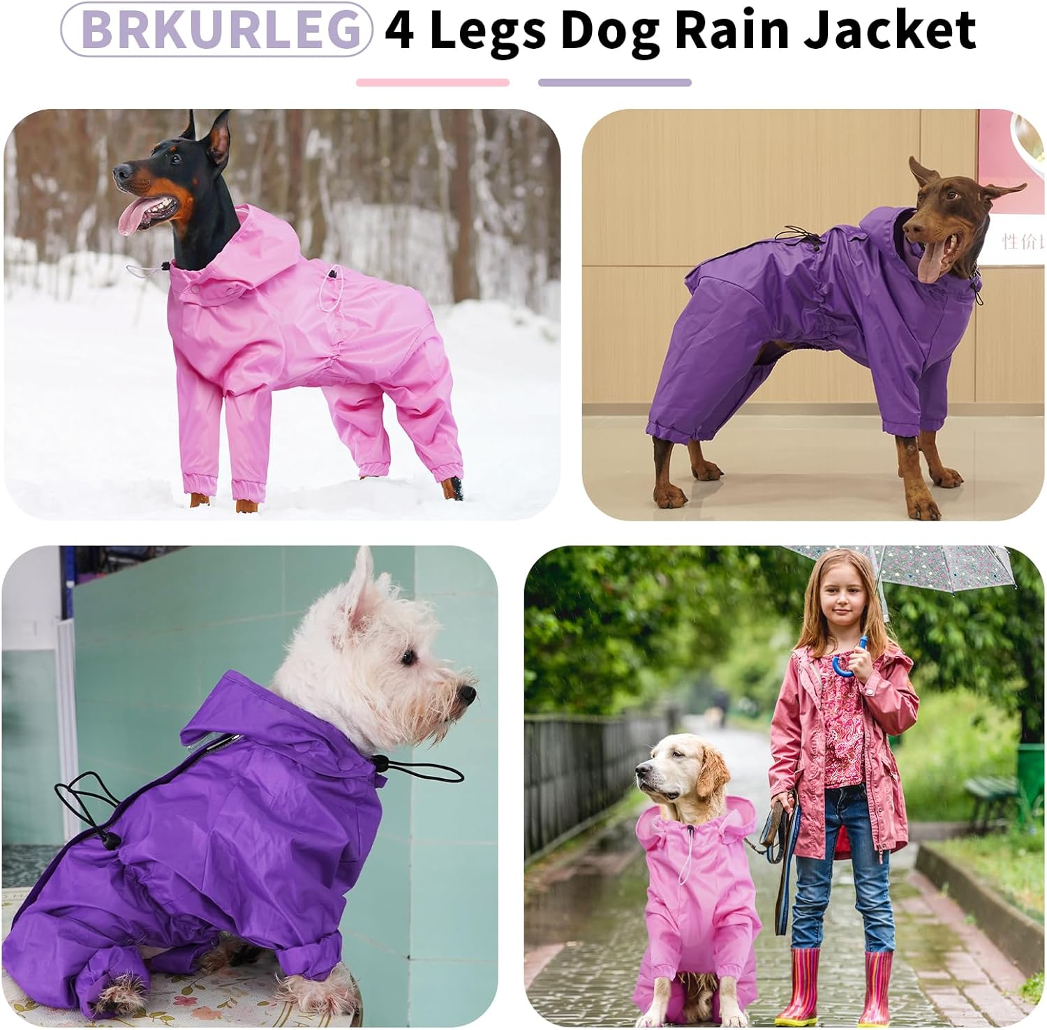 BRKURLEG Dog Raincoat Reflective Pet Poncho for Large Dogs Boy Girl, Pet Waterproof Rainproof Jacket with Leash Hole, 4 Legs Dog Rain Jacket, Lightweight Waterproof Jackets, Purple XXL