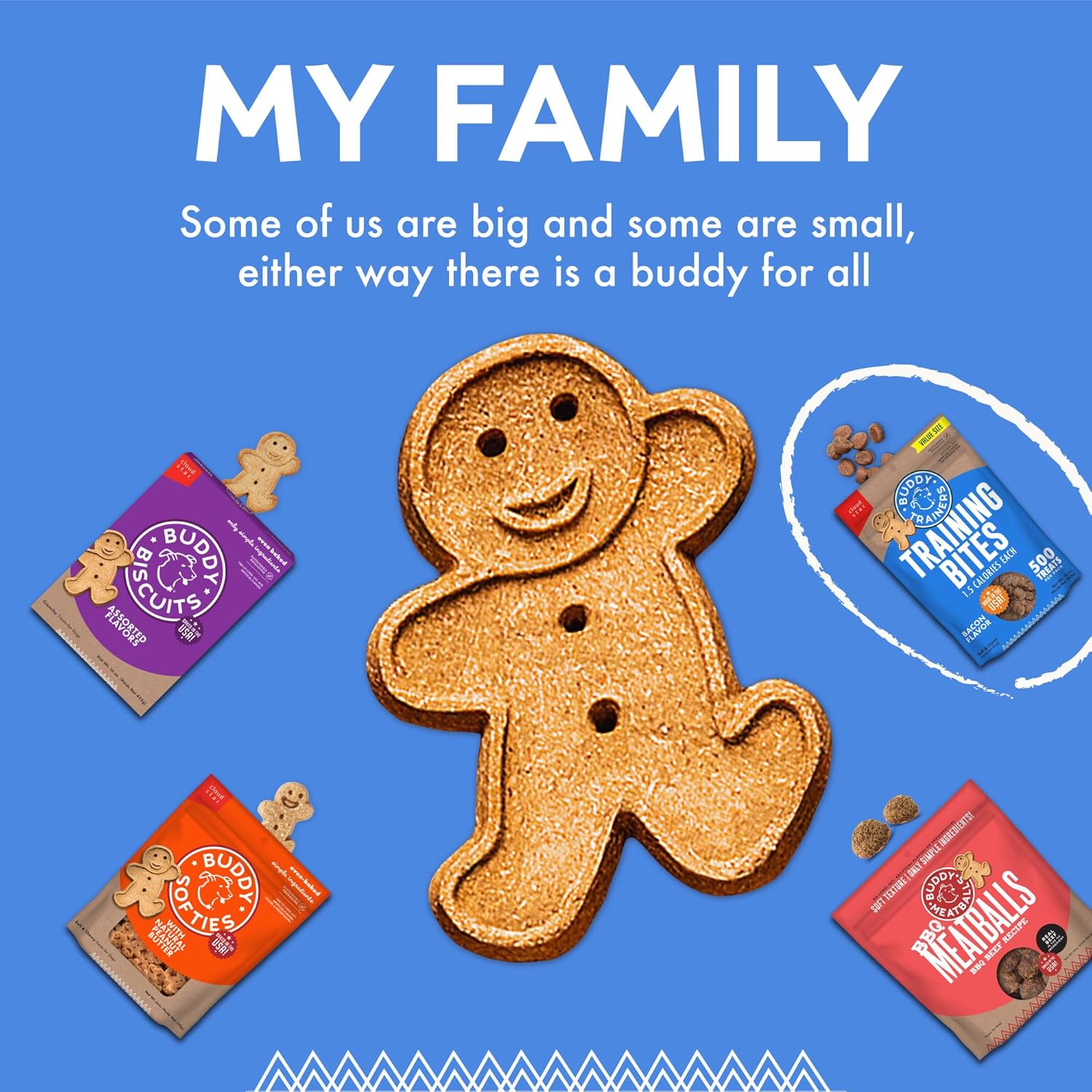 Smaller Size, Same Big Taste! Smaller dogs need smaller treats, but they crave the same big flavors. We make Buddy Biscuits® Teeny Treats with the same simple ingredients as our Oven Baked Buddy Biscuits, like natural peanut butter, but their size is just perfect for little dogs.