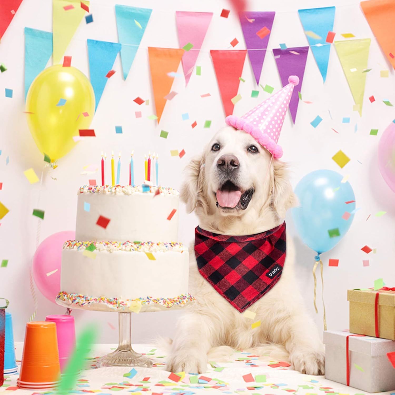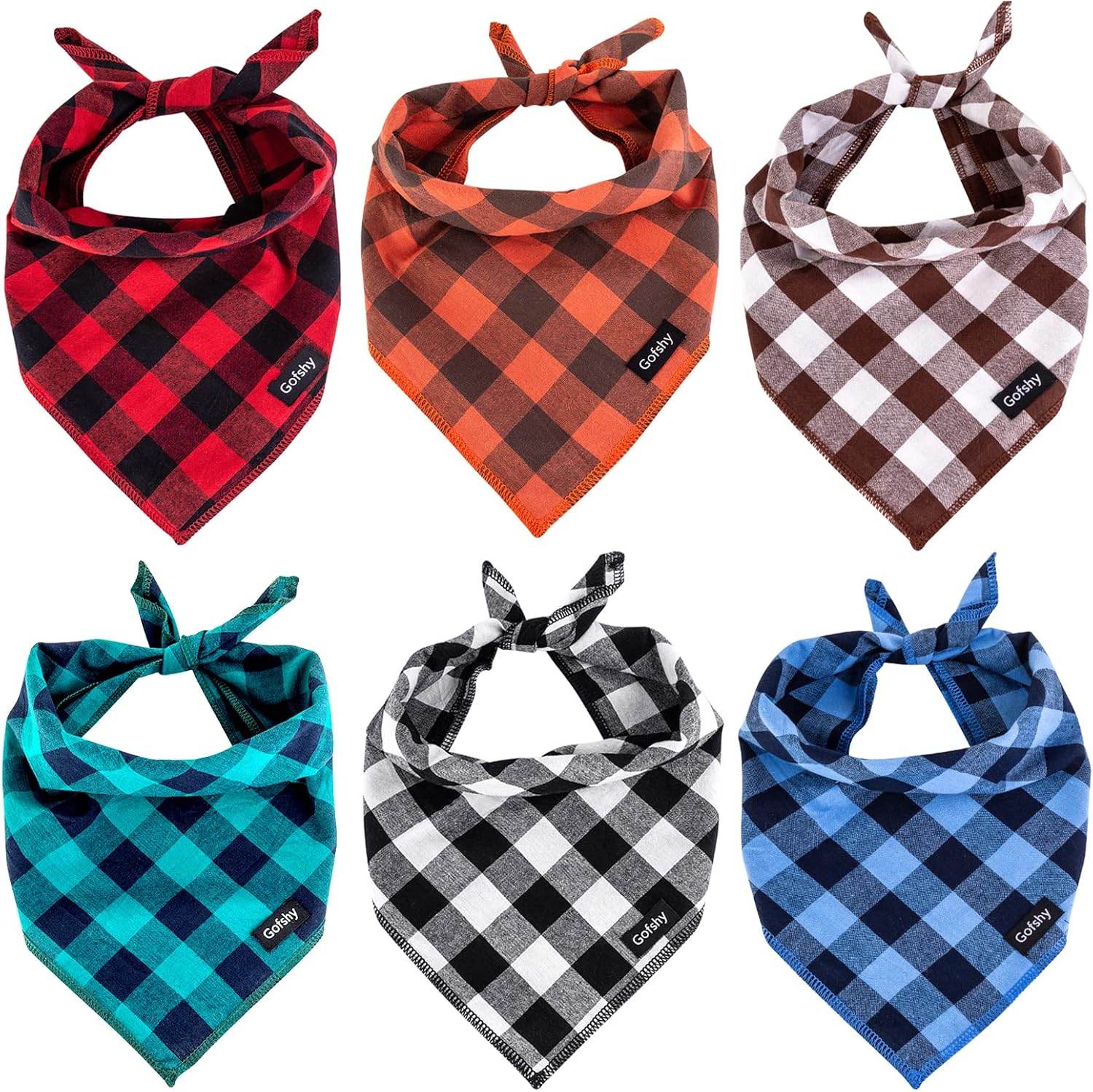- Buffalo Plaid Dog Bandanas: All year round dog bandanas, classic plaid dog scarfs, these 6PCS red green orange black brown blue bandanas are wonderful, that fits for girls and boys, it can change the look of your pet every day of one week, cute gift ideas.