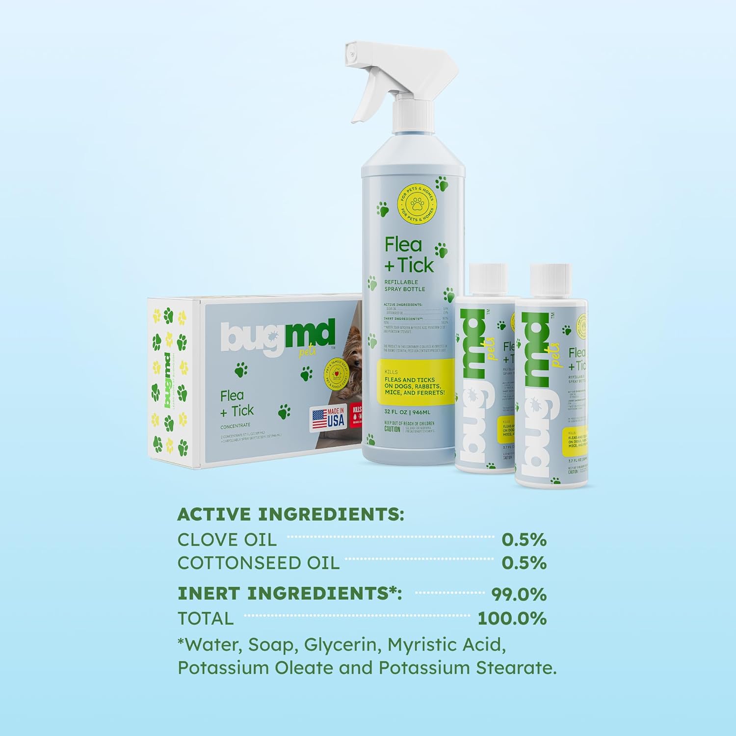 - Easy Refill System: Concentrate is condensed into a 4 oz bottle and is quickly diluted with water. Pair it with the reusable spray bottle for an easier refill and make up to 32 oz of flea and tick spray.