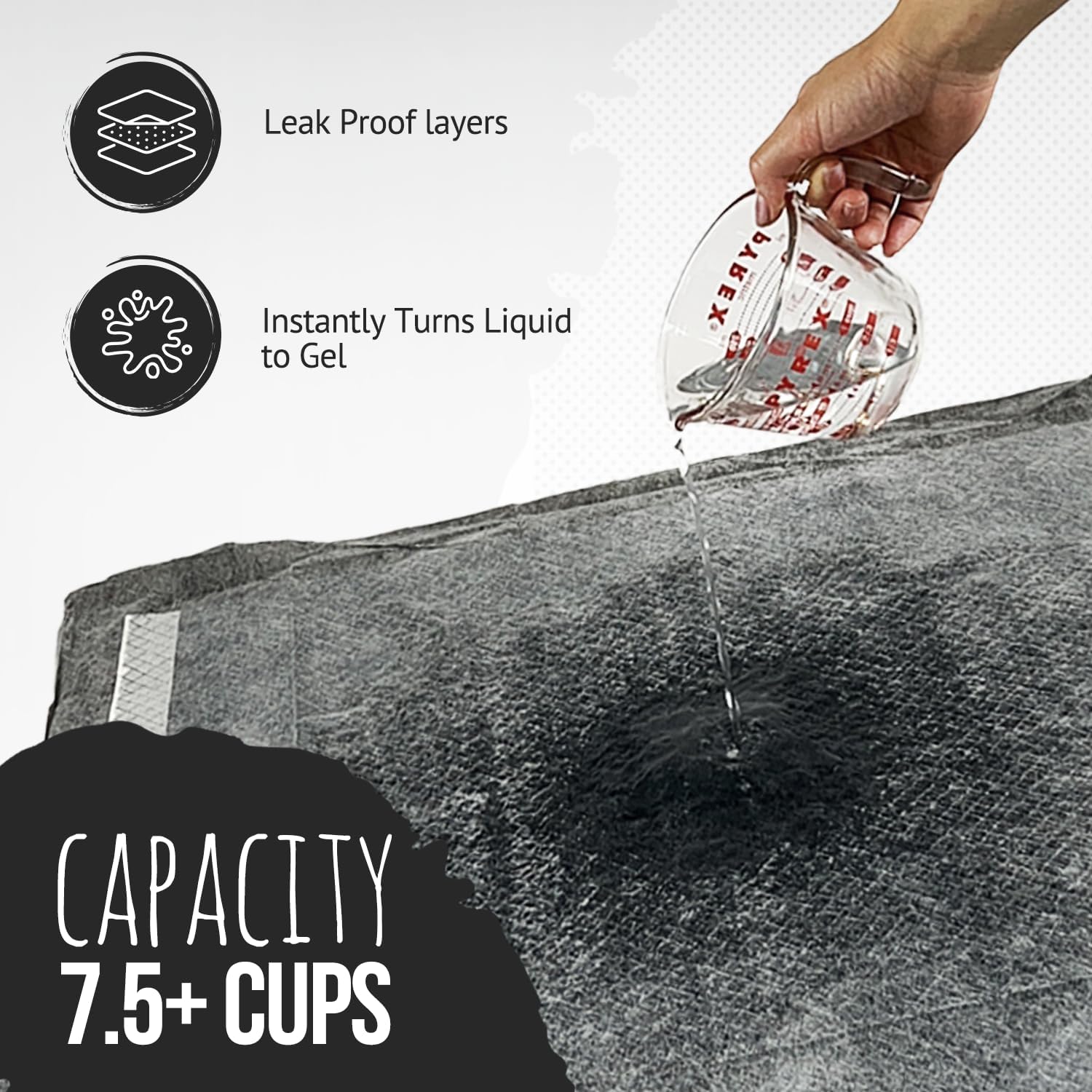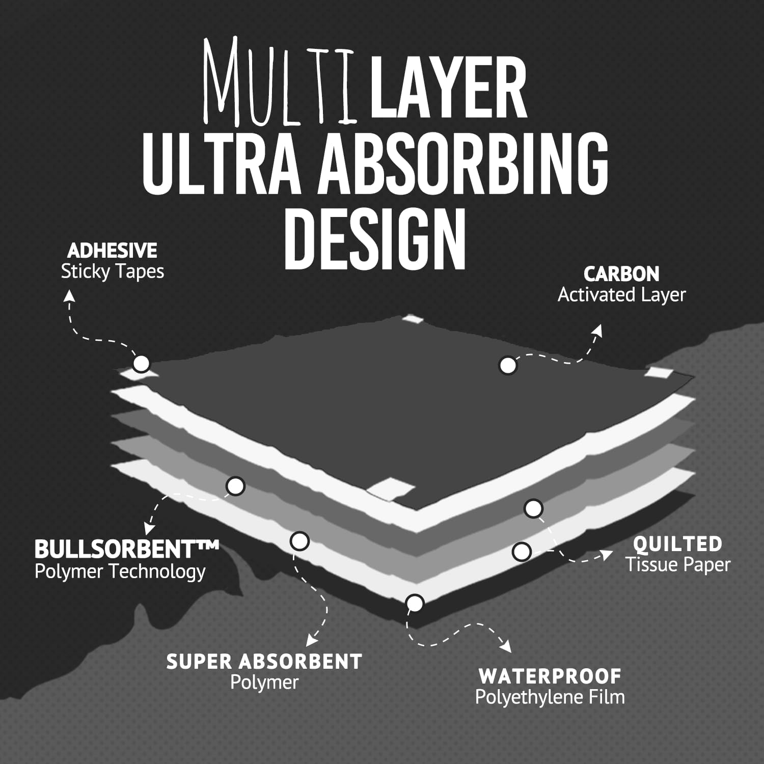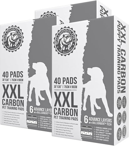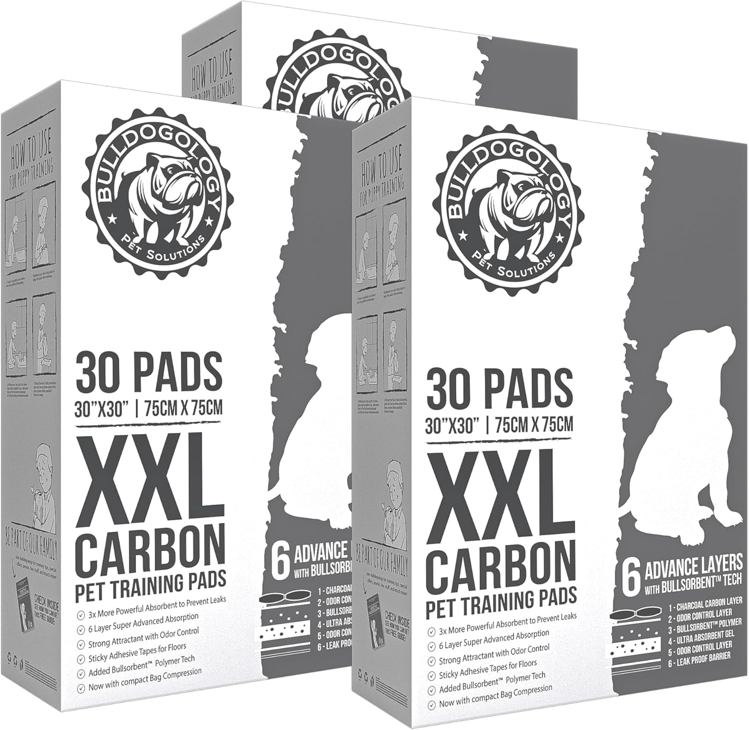 - 6 LAYER, 3x THICKER: 50 Count Large 24x24 inch carbon pee pads for dogs featuring Bullsorbent Polymer Technology for instant absorption, swiftly converting liquid to gel and ensuring floors, tiles, or carpets remain dry.