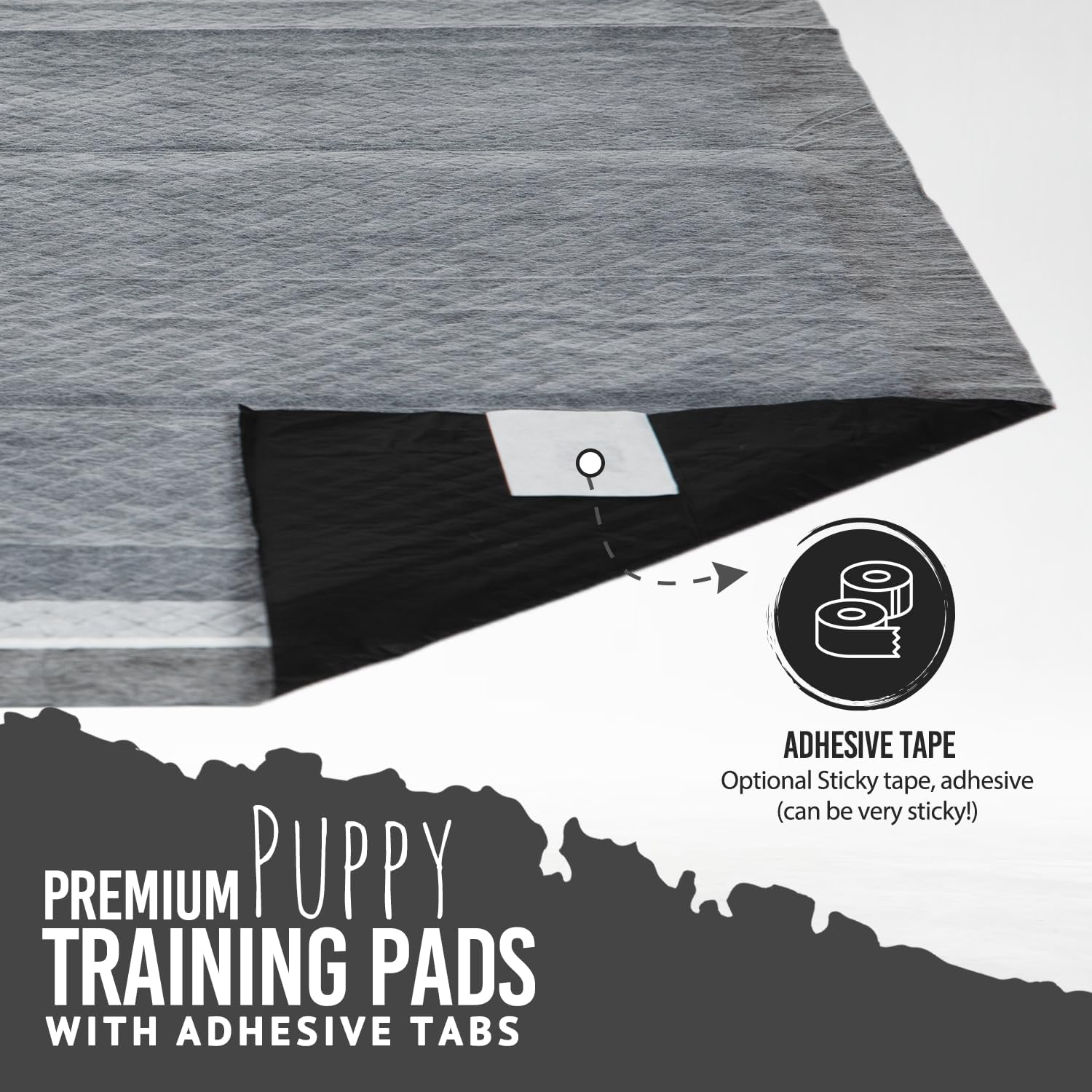 - ADHESIVE STICKY TAPE: Best dog training housebreaking wee wee pads that prevent moving and leaving a huge mess on floors or tiles (sticky tape are optional; adhesive can be very sticky). Carbon pee pads for dogs that work!