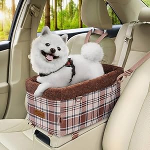 - Suitable for 9 LB: (NOTE:Before purchasing, measure your dog and the dimensions of your center console for the right fit.) Our double protection seat belts design can raise the seat position, making it suitable for most car models. We recommend it for small dogs or cats under 9 lbs. Product Dimensions: 17.9D × 9.8W × 8.1H inches.