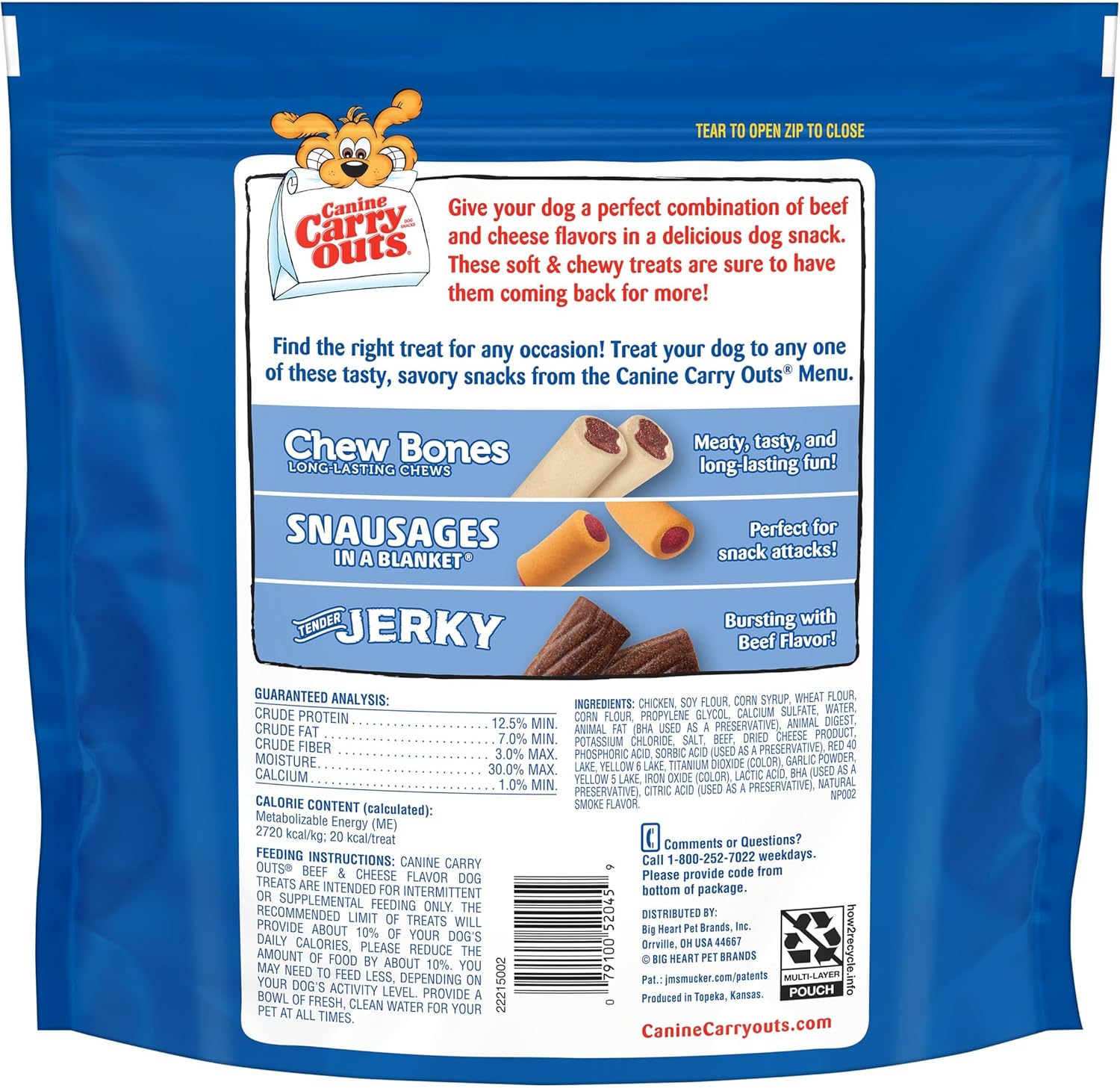 - Contains one (1) 47-ounce bag of Canine Carry Outs Beef & Cheese Flavor dog treats