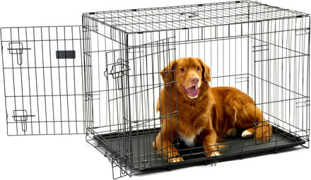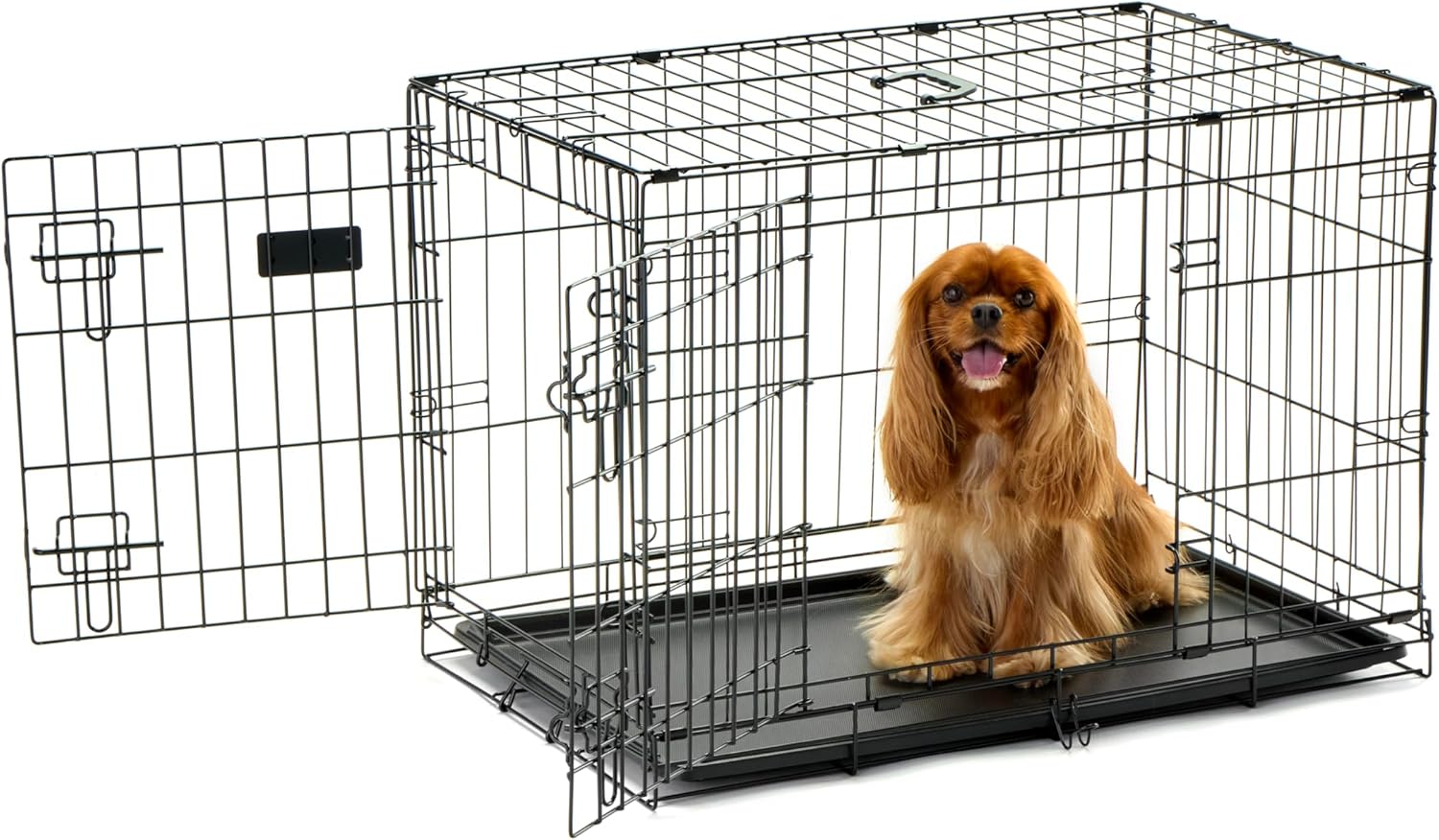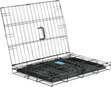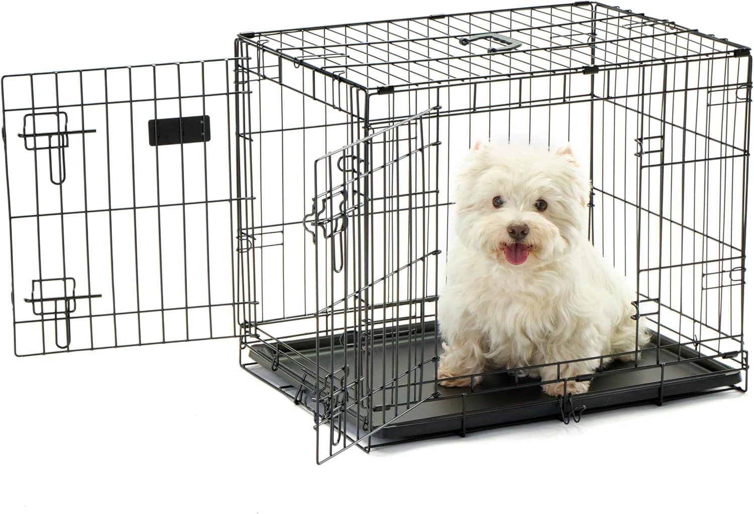 Give your pet a place to feel secure and safe with our Compact Single Door Wire Dog Crate, Small. This crate is constructed of all steel making it dog-tough, highly durable and secure. The Compact crate features a single door with secure bolt locking system to ensure your pets safety. Includes a black removable and washable composite pan. Quick and easy to set up with no tools required. The Compact crate folds flat and locks in place for complete portability or storage. Perfect for car travel or on the go. For indoor and outdoor use. Great tool for house training. This Compact Crate, small is ideal for small and toy breeds or puppies. Assembled crate dimensions 24-inches long by 18-inches wide by 19-inches tall.
