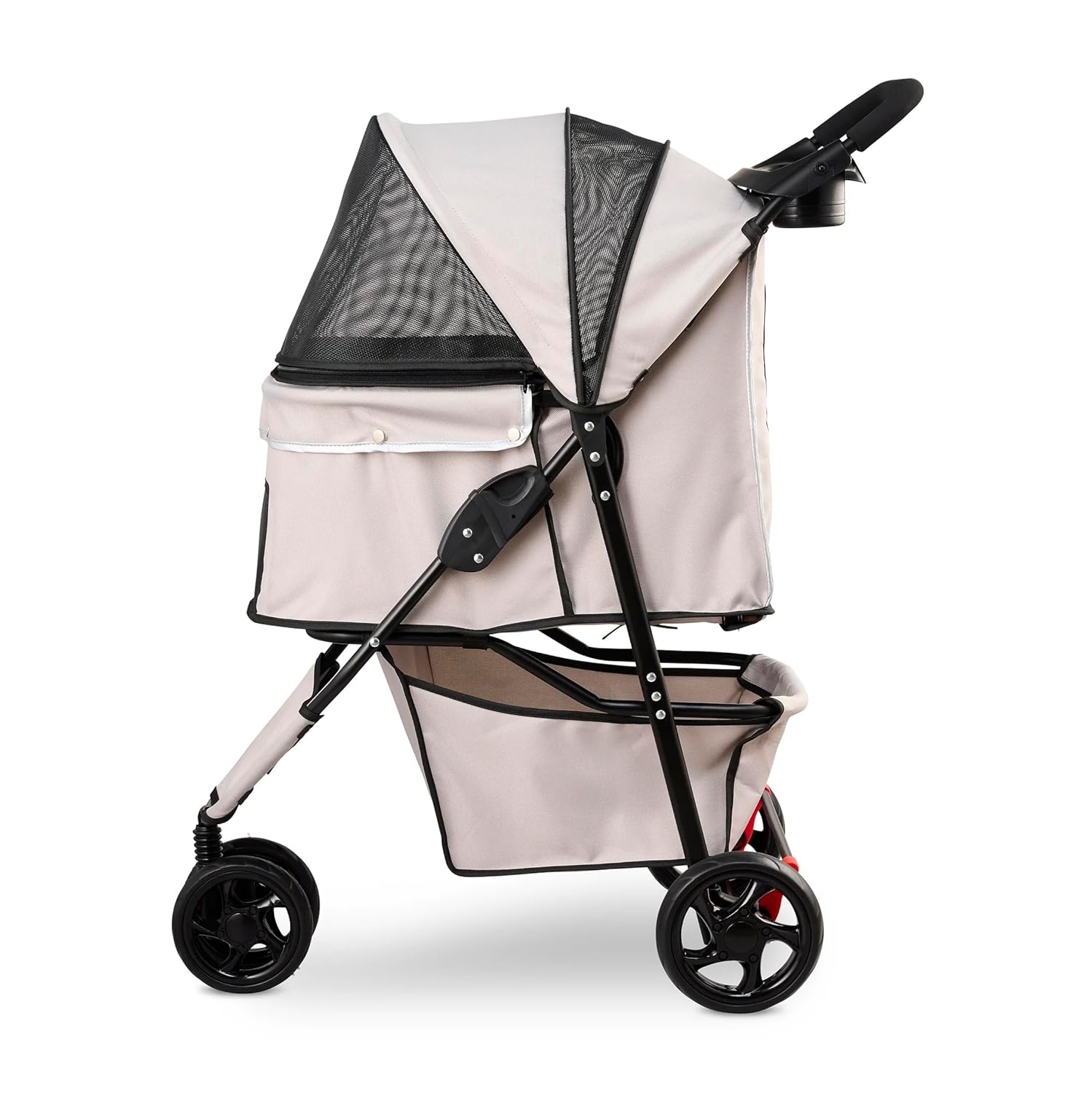 - SAFE: The Stroller’s fully zipped canopy and clip-in leash is designed to keep your pet contained and safe. Includes rear braking system and reflective trim for ease of sight. Holds up to 30 pounds.