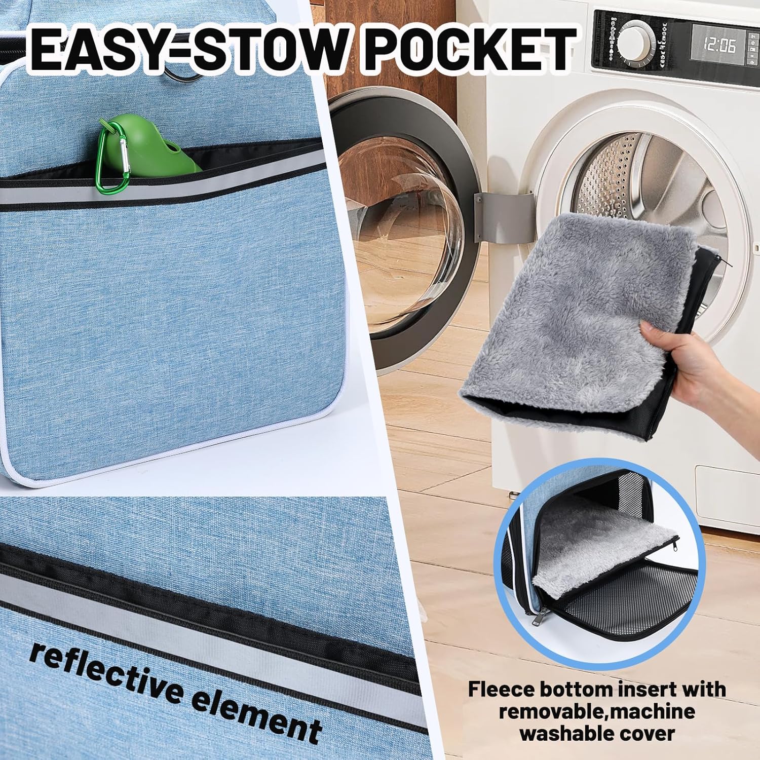 - SAFE TRAVEL - Featuring auto-locking zippers, this cat crate keeps your curious kitten securely inside. Includes an inner tether and a reflective strap on the side pocket for enhanced safety. The sturdy wooden base with machine-washable fleece cover provides excellent support and comfort. Suitable for cats up to 20 lbs or small dogs under 12 pounds, including breeds such as Chihuahuas and Yorkies