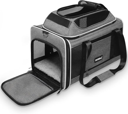 - EXPANDABLE AND COLLAPSIBLE TOP - Measuring 18 x 11 x 11 inches (LxWxH), our sturdy cat carrier features an innovative pop-up top that adds an extra 3.5 inches of height, reaching a total height of about 14 inches when fully extended. It can be conveniently compressed to slide under the seat, while also providing your pet with sufficient headroom to stretch or stand during travel