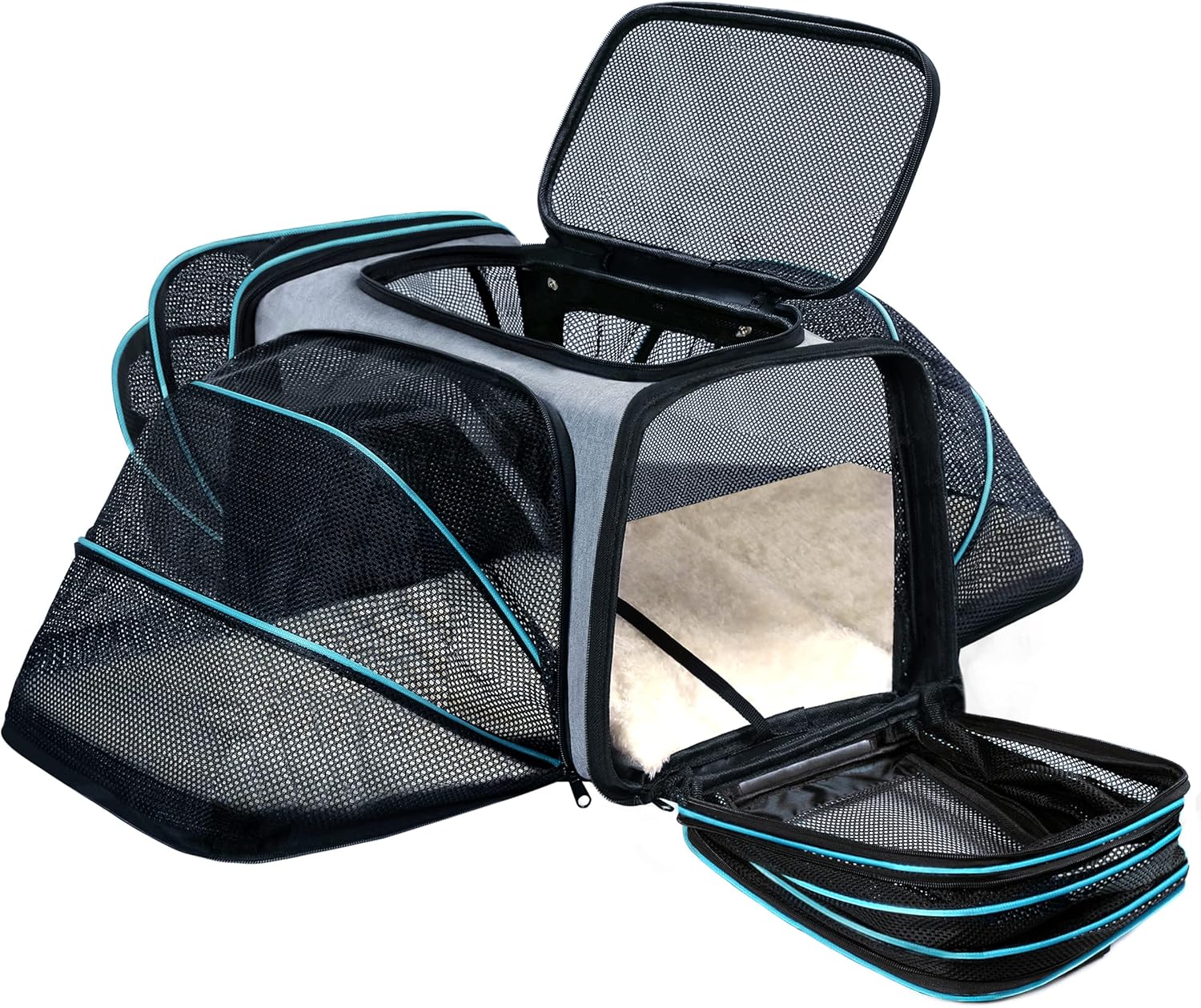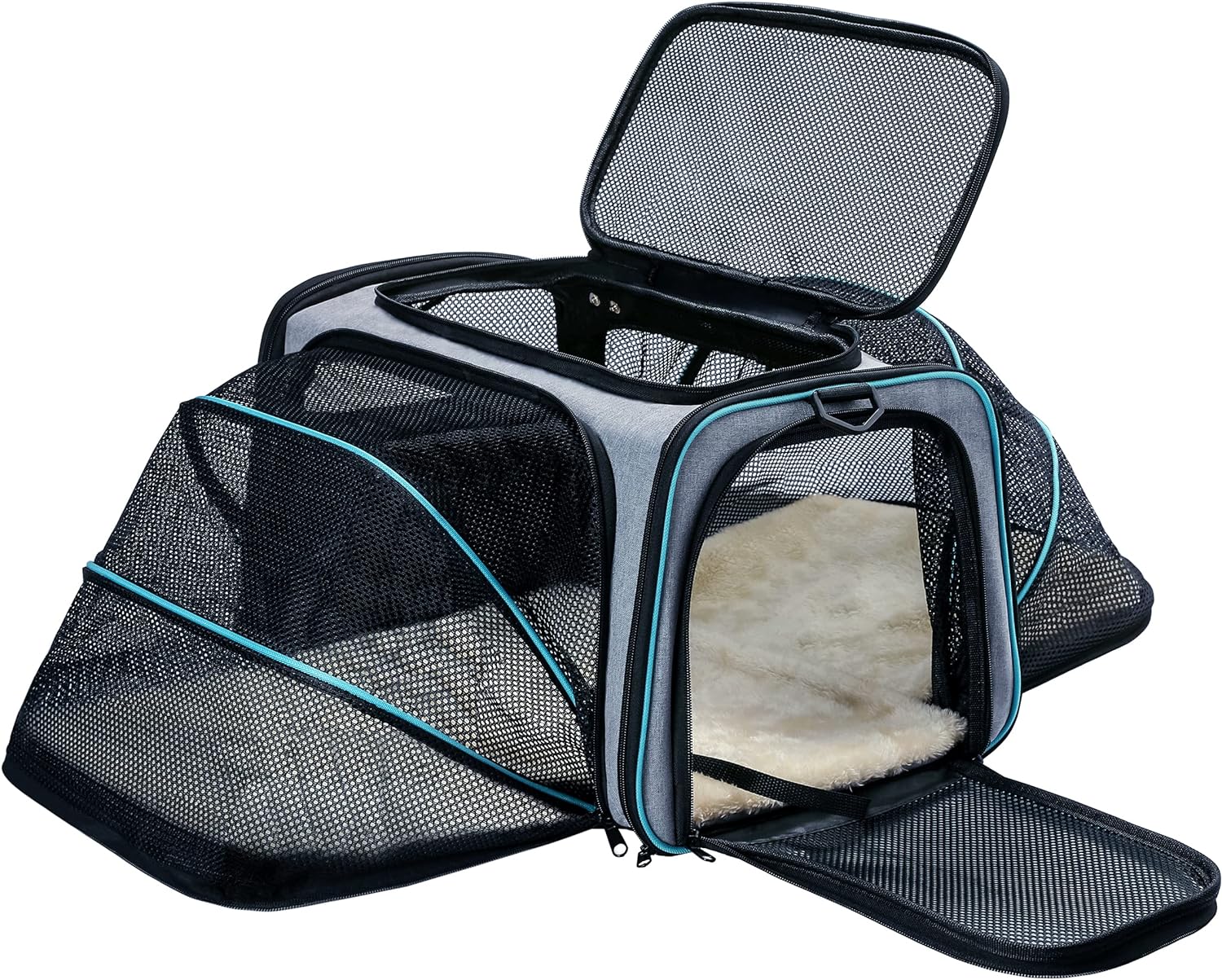 - Durable Soft Sided Cat Carrier: The pet travel carrier is designed with microfiber frame, which can keep it upright, strong stability even when fully expanded, and make your pet comfortable and safe.The pad is made of suede and polyester, washable and easy to clean.