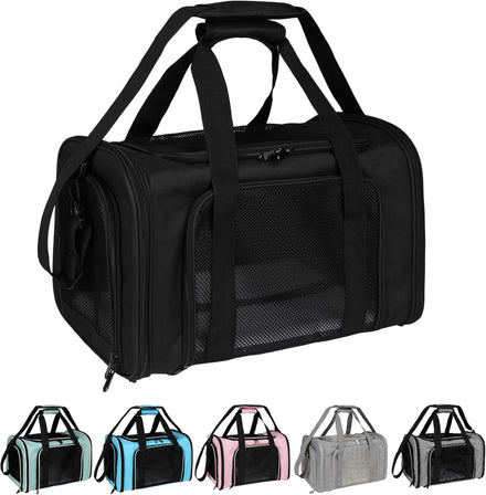 - [Portable Dog Cat Travel Carrier Bag] Our cat dog travel carrier bags are TSA airline approved for most major airlines. The double strap design allows you to carry the pet carrier bag over your shoulder or in your hand, making it easy for you to carry it to any mode of transport, thus ensuring your pet's condition and safety all the way.