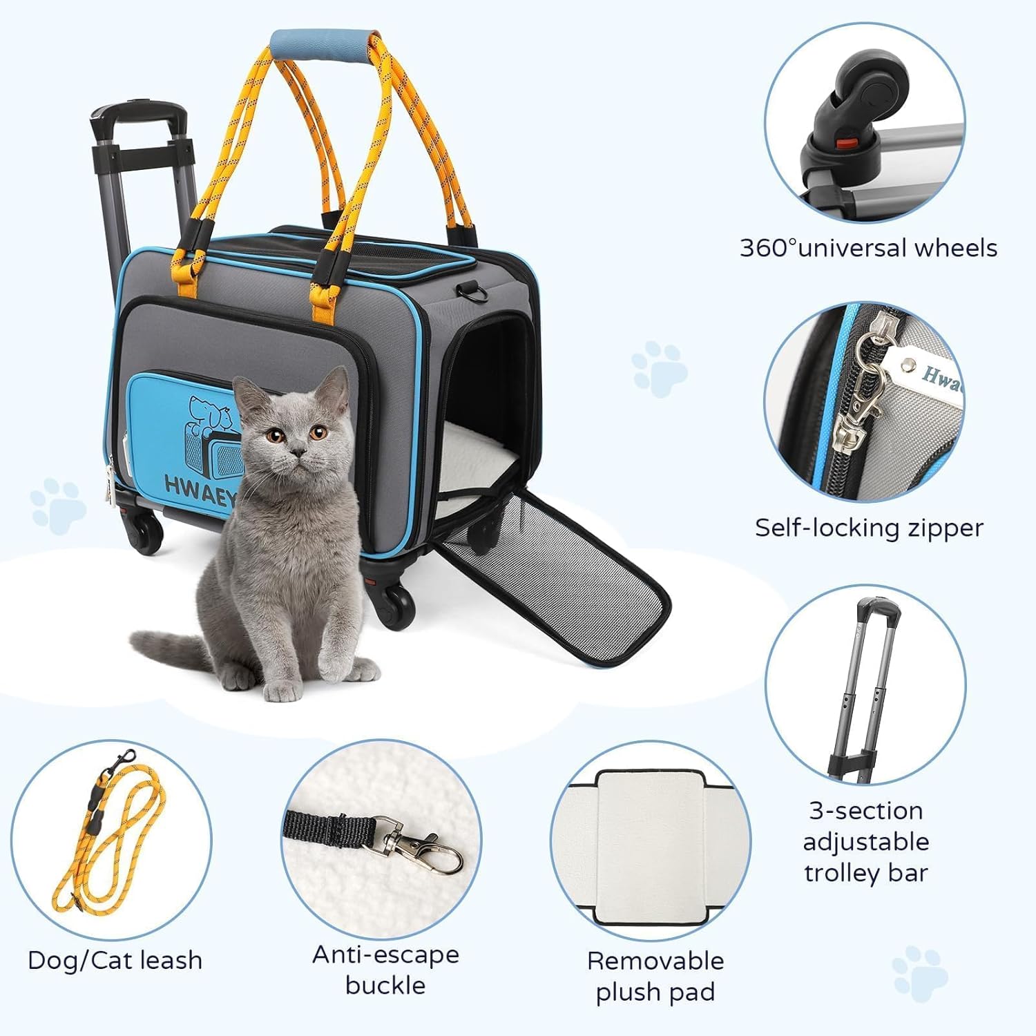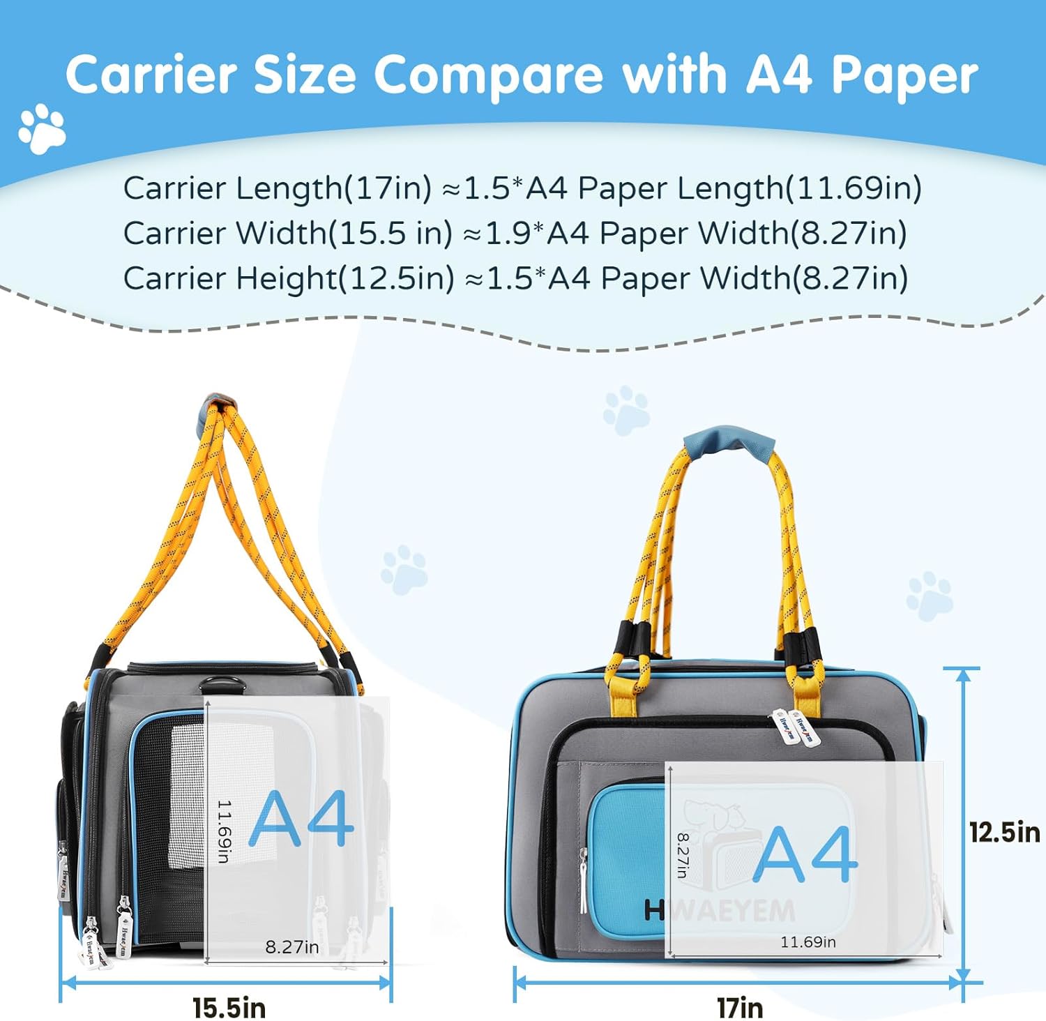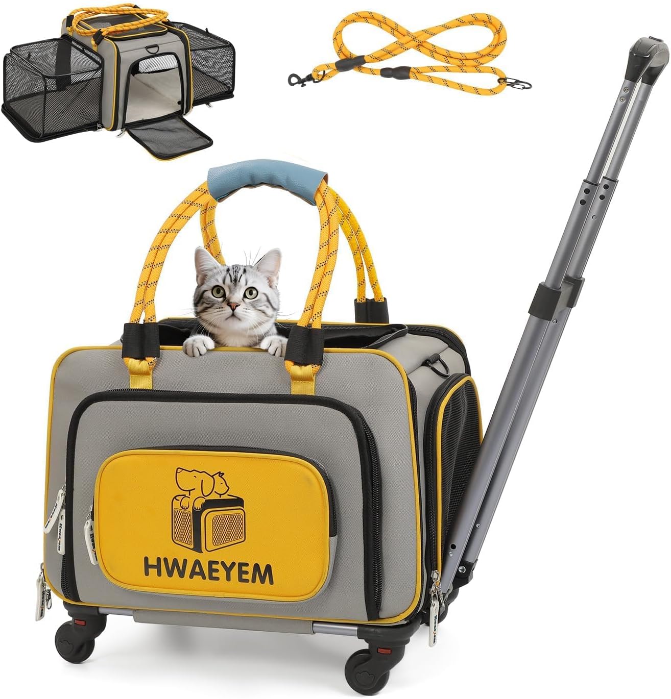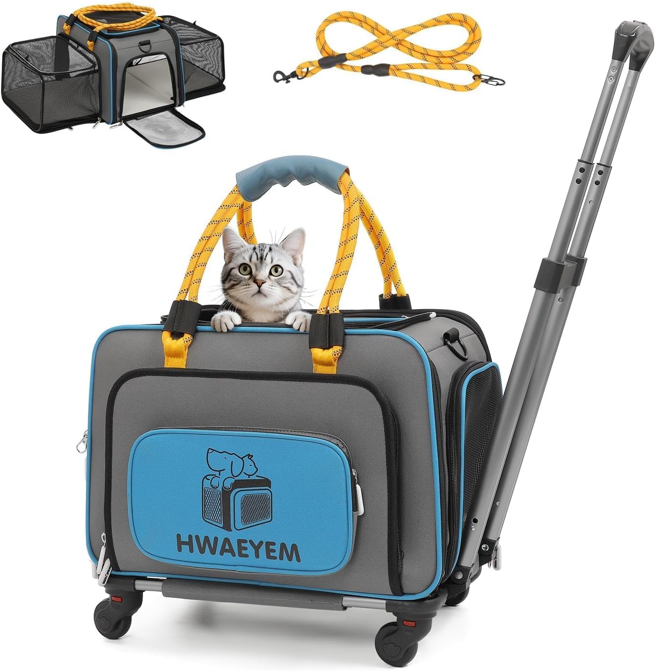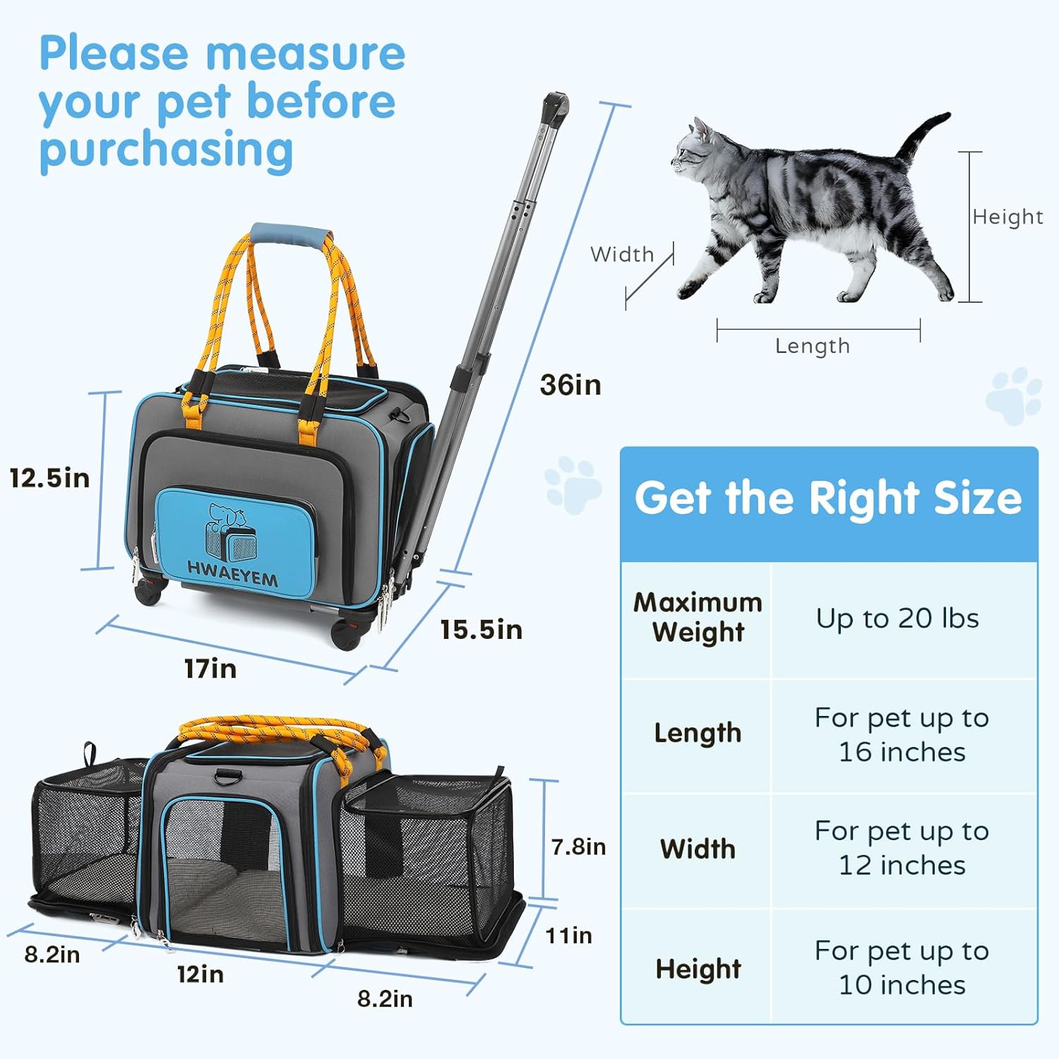 - CAT CARRIER FRIENDLY REMINDER:The cat carrier with wheels size: 17"L x 15.5"W x 12.5"H inches (without wheels), for pets up to 20lbs. In order to choose the right dog carrier with wheels size for your pet, it is recommended that you measure your pet's length, height and weight before purchasing. NOTE: THIS PET CARRIER DOES NOT MEET TSA AVIATION APPROVALS!