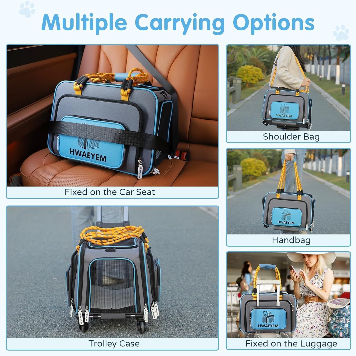 - FLEXIBLE USING DOG BAG PUPPY CARRIER:The dog travel crate with different usage methods to meet different needs. Hand carry/carry by adjustable shoulder strap/put on the top of suitcase/car seat, which is perfect for long trips/car rides/vet visit/vacation/home use etc