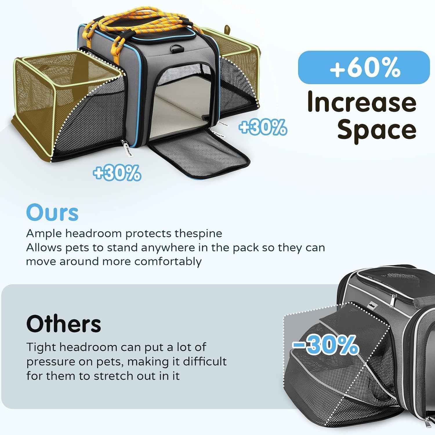 - EXPANDABLE & BREATHABLE DOG CARRIER:Our dog carrier for small dogs can be extended on 2 sides to provide a spacious and more comfortable space than other dome-style expandable carriers.Design 3 large entrances with mesh ventilated and wide view