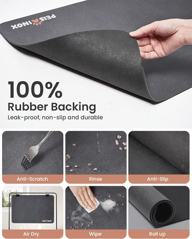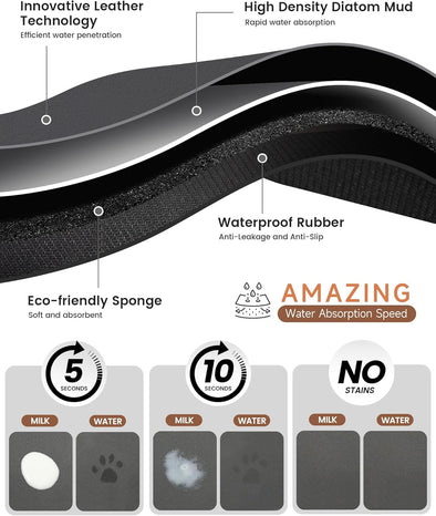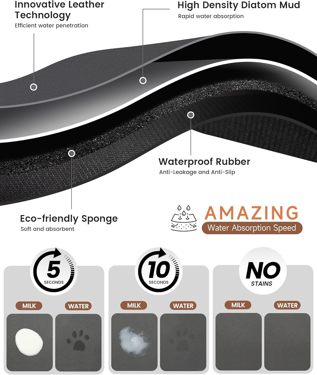 - 🐾SUPERIOR WATER ABSORPTION & QUICK DRYING - Our dog food mat boasts exceptional water absorption and quick-drying capabilities, rapidly soaking up spills like water and milk without leaving any traces. Provide your dog with a clean and hygienic dining environment.
