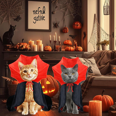 - Cat Halloween Costumes: This set of Halloween pet vampire costume include 1 red and black pet vampire cloak. This funny Halloween costume for cats and dogs will make your pet look adorable and add more fun to Halloween.
