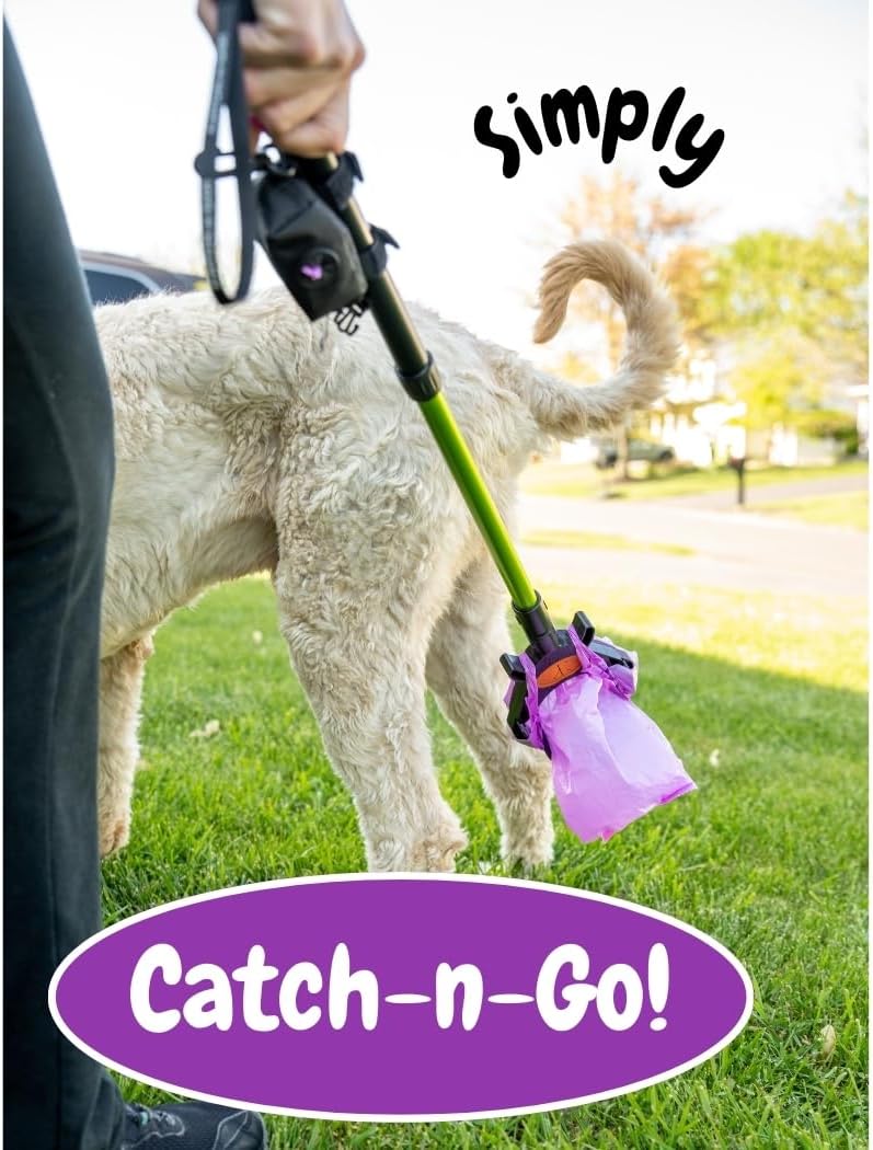 - Do you have challenges when walking your furry friend? This Catcher was Made for You. On your walks, simply Catch-N-Go! Many love that it is Very Light-Weight (only 8 ounces) and easy to use with its adjustable telescopic aluminum handle 23"-33". No Bending, Squatting, or Kneeling. No Touching, No Handling, or Carrying Stinky Bags on Walks. See our numerous positive testimonials from users of health and physical challenges with their knees, hips, lower back, wheelchairs, and more!